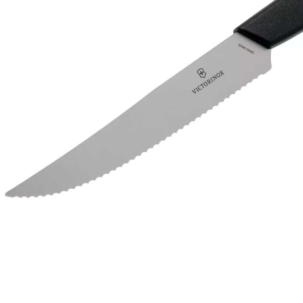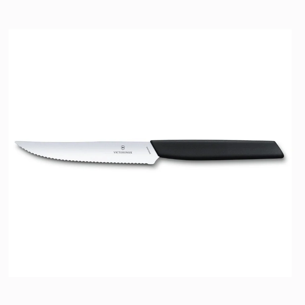 Disfruta de cada bocado con el Set de 2 Cuchillos para Carne Swiss Modern de Victorinox, diseñados para los amantes de la carne. Con hojas afiladas que facilitan el corte y mangos ergonómicos para precisión, estos cuchillos combinan funcionalidad y diseño moderno. Ideal para quienes buscan elevar su experiencia culinaria, este set transforma cada comida en un momento de lujo. Adquiere tu set y siente la diferencia en control y elegancia al cortar. Haz de cada cena una ocasión especial con Victorinox.