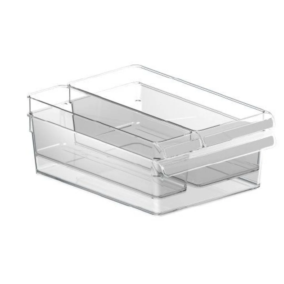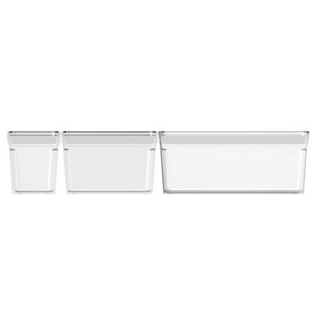 El Organizer Loft tiene la ventaja decisiva de que puede colocarlo simplemente sobre los insertos de cristal individuales. De esta forma, podrá aprovechar al máximo el espacio disponible en su refrigerador. Gracias al plástico transparente, puedes ver de un vistazo lo que hay en tu organizador Rotho. El tamaño manejable y el mango de forma ergonómica permiten un fácil manejo. También puede etiquetar su organizador de nevera individualmente, para una mejor visión general. Gracias a su inteligente forma y tamaño, este artículo también garantiza una circulación de aire óptima en el refrigerador. Medidas: 31 x 7,5 x 9 cm, 31 x 14 x 9 cm y 31 x 22 x 9 cm