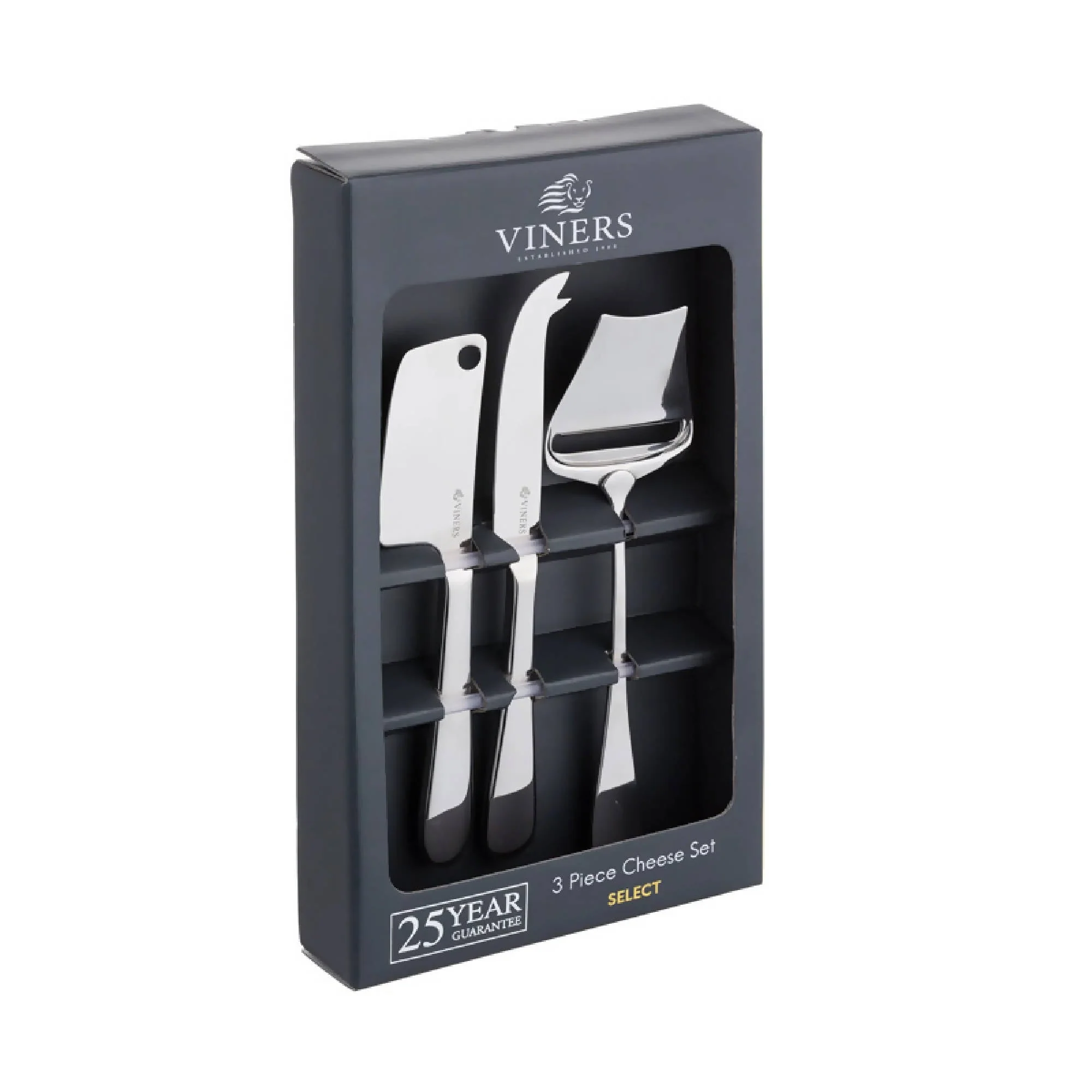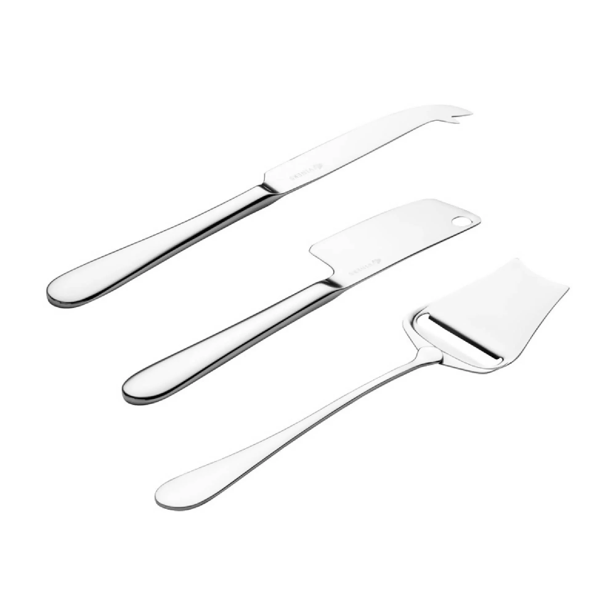 El juego de cuchillos para queso Viners Select de 3 piezas incluye todos los cuchillos necesarios para cortar y servir sus quesos favoritos. Este juego incluye 1 cuchillo para queso con puntas, 1 cuchillo para queso duro y 1 cuchillo para cortar queso. El cuchillo para queso con puntas es perfecto para cortar quesos más blandos con la hoja afilada que permite cortarlos fácilmente. La punta en forma de ‘V’ le permite servir su queso precortado a los invitados. El cuchillo para queso duro tiene una hoja pesada, resistente y afilada que corta los quesos más duros con facilidad. El cuchillo para cortar queso se utiliza para cortar quesos semiduros y duros para crear rodajas finas y uniformes. Los cubiertos están hechos de acero inoxidable de la mejor calidad y pulidos con un acabado de espejo.