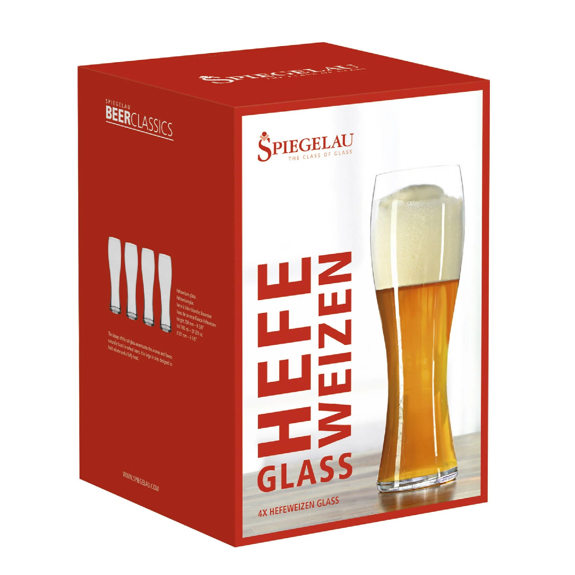 Spiegelau ha desarrollado cuatro tipos diferentes de vasos de cerveza que respaldan las características de estilos de cerveza específicos. Cada vaso es especialmente delgado y tiene un borde delgado que eleva la percepción de la sensación y el sabor de la boca. La forma de cada vaso ayuda a la cerveza a liberar todo su espectro de sabores y los entrega a la nariz y la boca. Capacidad: 700 ml