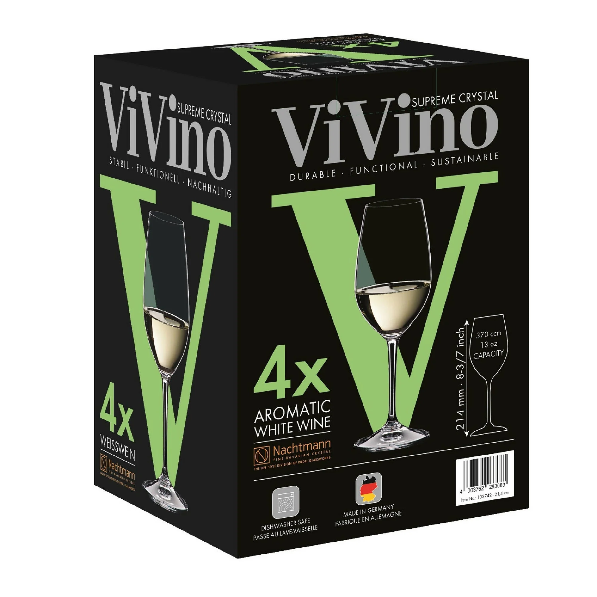 La copa ViVino de vino blanco es la copa perfecta para adaptarse a una variedad de vinos blancos. La copa ayuda a liberar los aromas de los vinos blancos, y equilibra la fruta y el dulzor de los vinos para aportar estructura. Elegante para todos los días, ViVino de Nachtmann cumple con los más altos estándares de estabilidad, funcionalidad y sostenibilidad. Sus formas clásicas y su potencia robusta garantizan que sean duraderas y perfectas para un uso regular.El vibrante empaque con tonos verde lima incluye un esquema de color fresco para resaltar cada estilo de copa. ViVino es un regalo fantástico para todos los amantes del vino