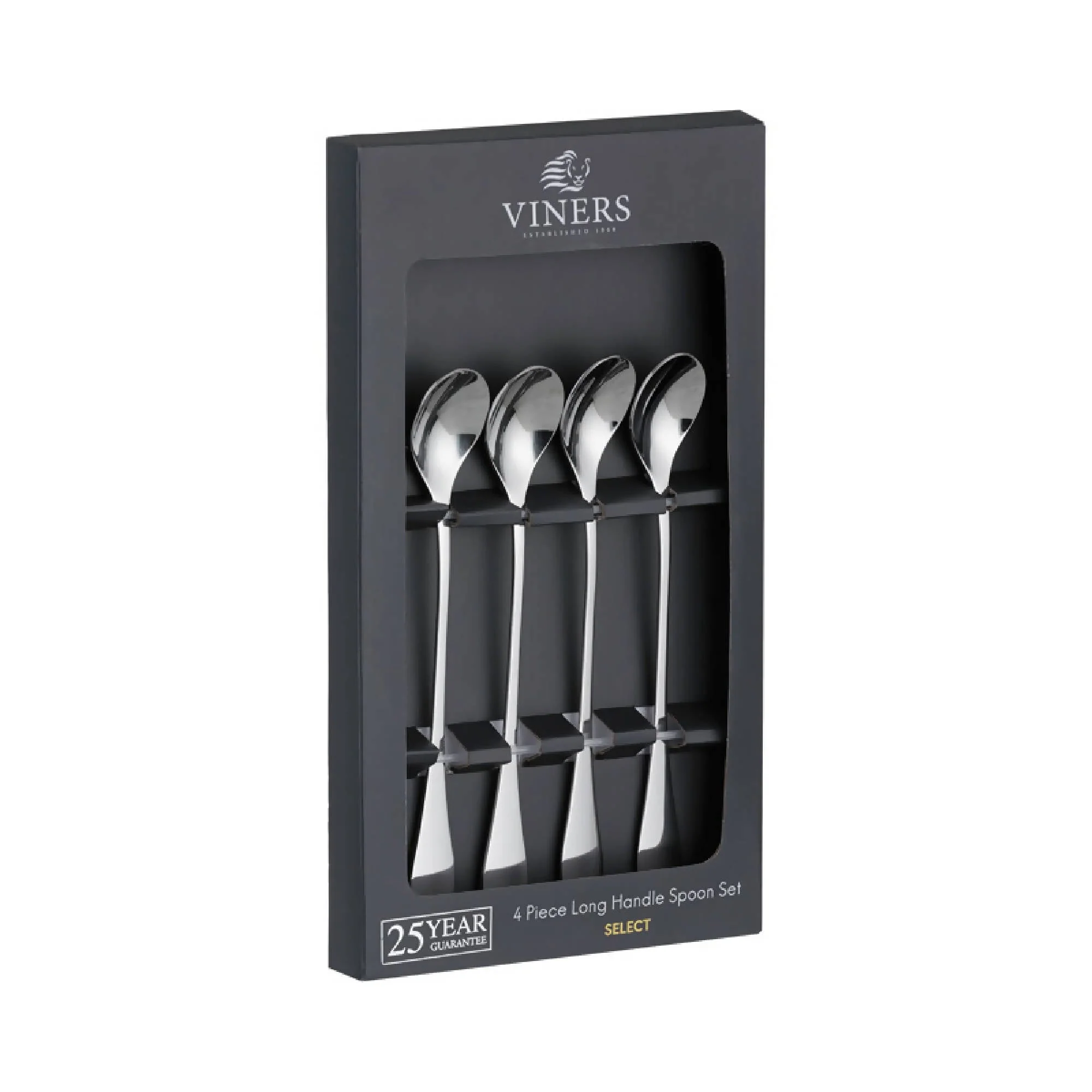 El juego de cucharas de mango largo Viners Select de 4 piezas es versátil y elegante. Con mangos extra largos, son ideales para revolver cafés con leche, mezclar cócteles altos o disfrutar helados y postres servidos en vasos largos. Su diseño en forma de lágrima es equilibrado y cómodo de sostener. Fabricadas con acero inoxidable 18/0 de alta calidad y pulidas con un acabado espejo, estas cucharas son resistentes a la oxidación, aptas para lavavajillas y garantizan durabilidad. Presentadas en una caja de regalo en papel de aluminio plateado y negro mate, son perfectas como obsequio. Con más de 110 años de historia, Viners es una marca británica icónica, reconocida por su calidad en cubiertos y su rica herencia.