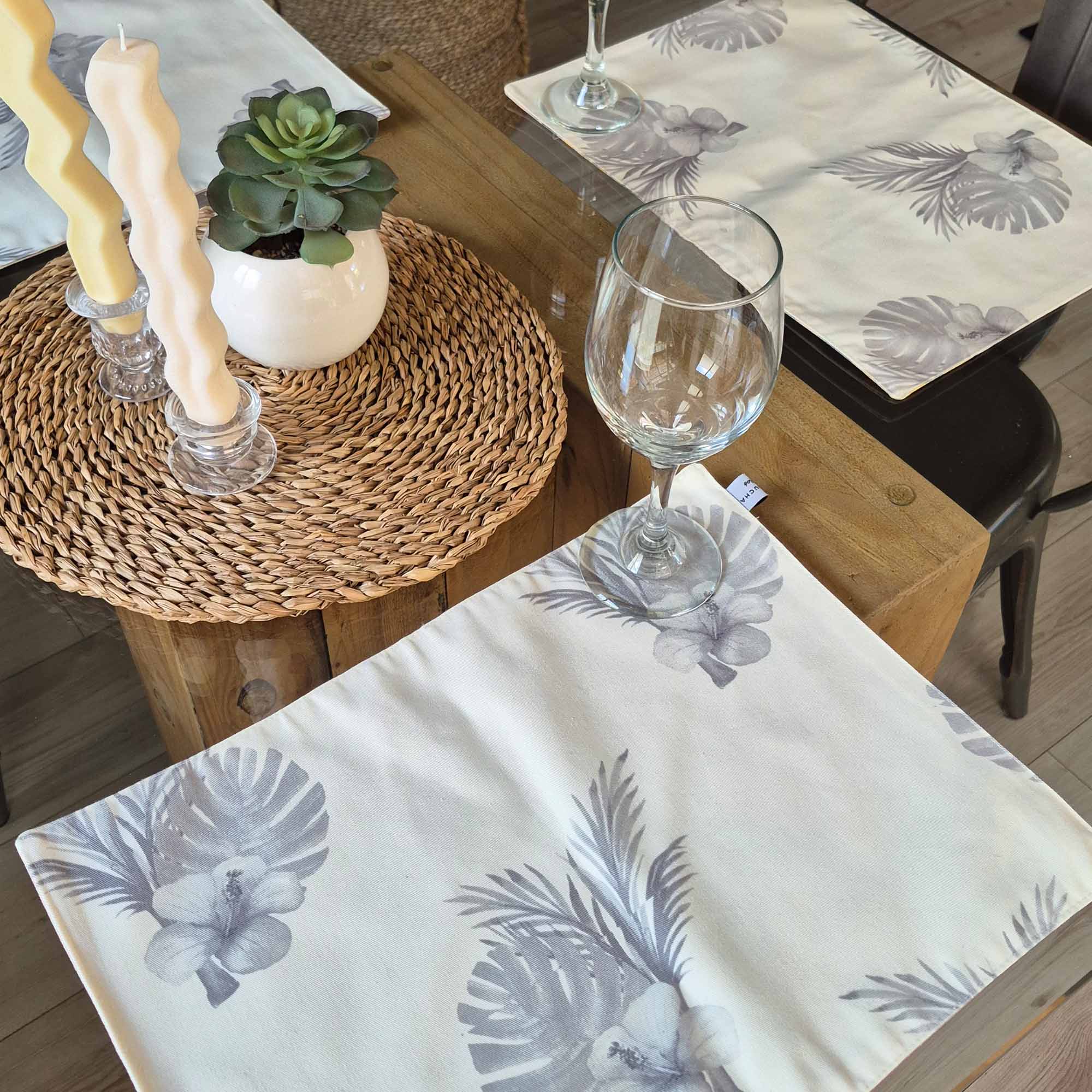 El Set de 4 Individuales Reversibles Tropical María de Nicole Pauchard Diseños es el complemento perfecto para crear momentos inolvidables en la mesa. Confeccionados 100% en Chile con gabardina de alta calidad, estos individuales presentan un diseño textil propio y reversible que añade un toque de estilo y versatilidad a cada comida. Disfruta de la mejor compañía sabiendo que, si se manchan, puedes simplemente meterlos a la lavadora y estarán listos para su próximo uso. Aporta color y funcionalidad a tus reuniones con estos individuales, diseñados para embellecer tu mesa y acompañar tus mejores conversaciones.