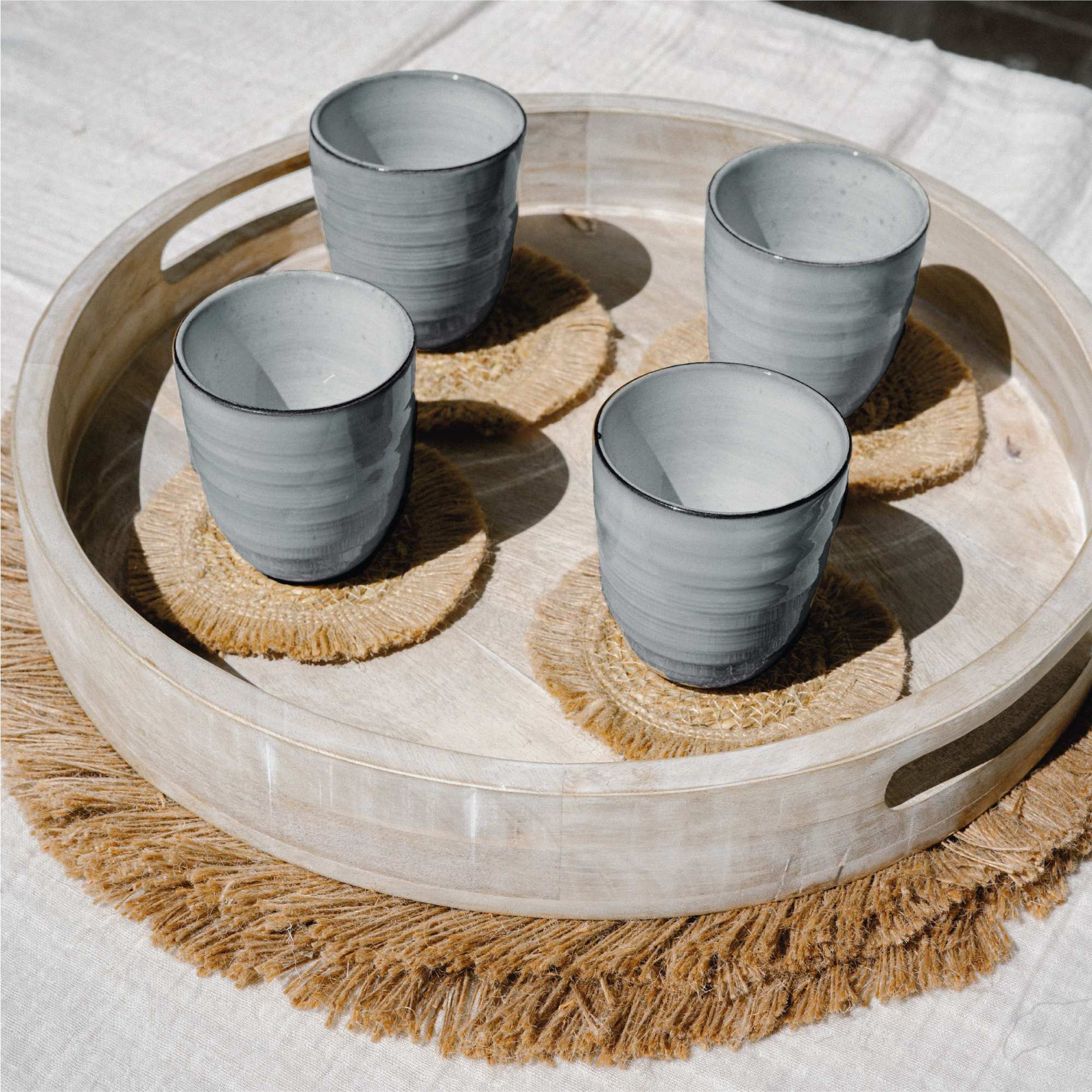 Elegancia y Estilo para tu Mesa. Disfruta de tus bebidas favoritas con el set de vasos Amalfi de Simplit. Su diseño en color azul grisáceo aporta un toque de serenidad y modernidad, perfecto para complementar cualquier mesa. Con una capacidad de 270 ml y un tamaño práctico (7,9 cm de diámetro y 9 cm de alto), son ideales para bebidas calientes o frías.Fabricados en cerámica gres de alta calidad, ofrecen durabilidad y elegancia, adaptándose al uso diario o en ocasiones especiales. Completa tu vajilla con los vasos Amalfi de Simplit y añade estilo a cada momento.