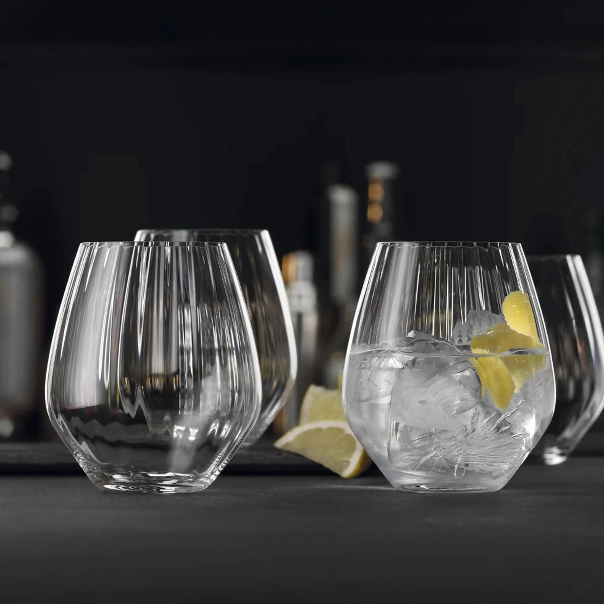 Descubre el Set de 4 Vasos Gin Tonic Optic Spiegelau con una capacidad de 625 ml, el último lanzamiento de la reconocida marca alemana Spiegelau. Diseñados para realzar la experiencia de tus cócteles, estos vasos destacan por su exclusivo diseño con 24 líneas verticales que aportan un brillo elegante y un toque sofisticado a cada trago. Ideales para disfrutar de tu gin tonic, cócteles, bebidas refrescantes o tragos premium, su forma optimiza la liberación de aromas, mejorando el sabor de cada mezcla. Fabricados con vidrio de alta calidad, combinan resistencia y estilo, perfectos para cualquier ocasión. Eleva tus momentos especiales con la distinción y calidad de Spiegelau.