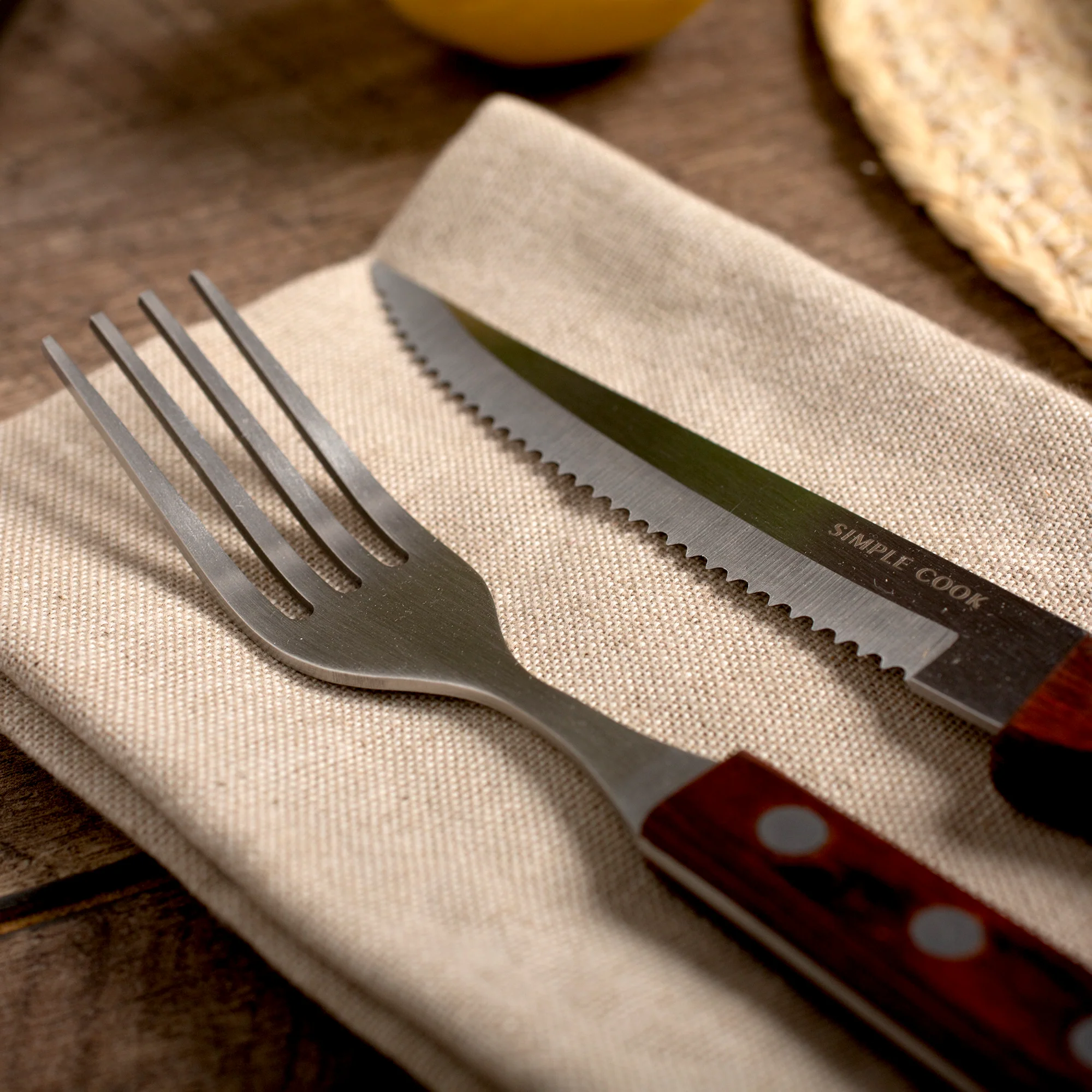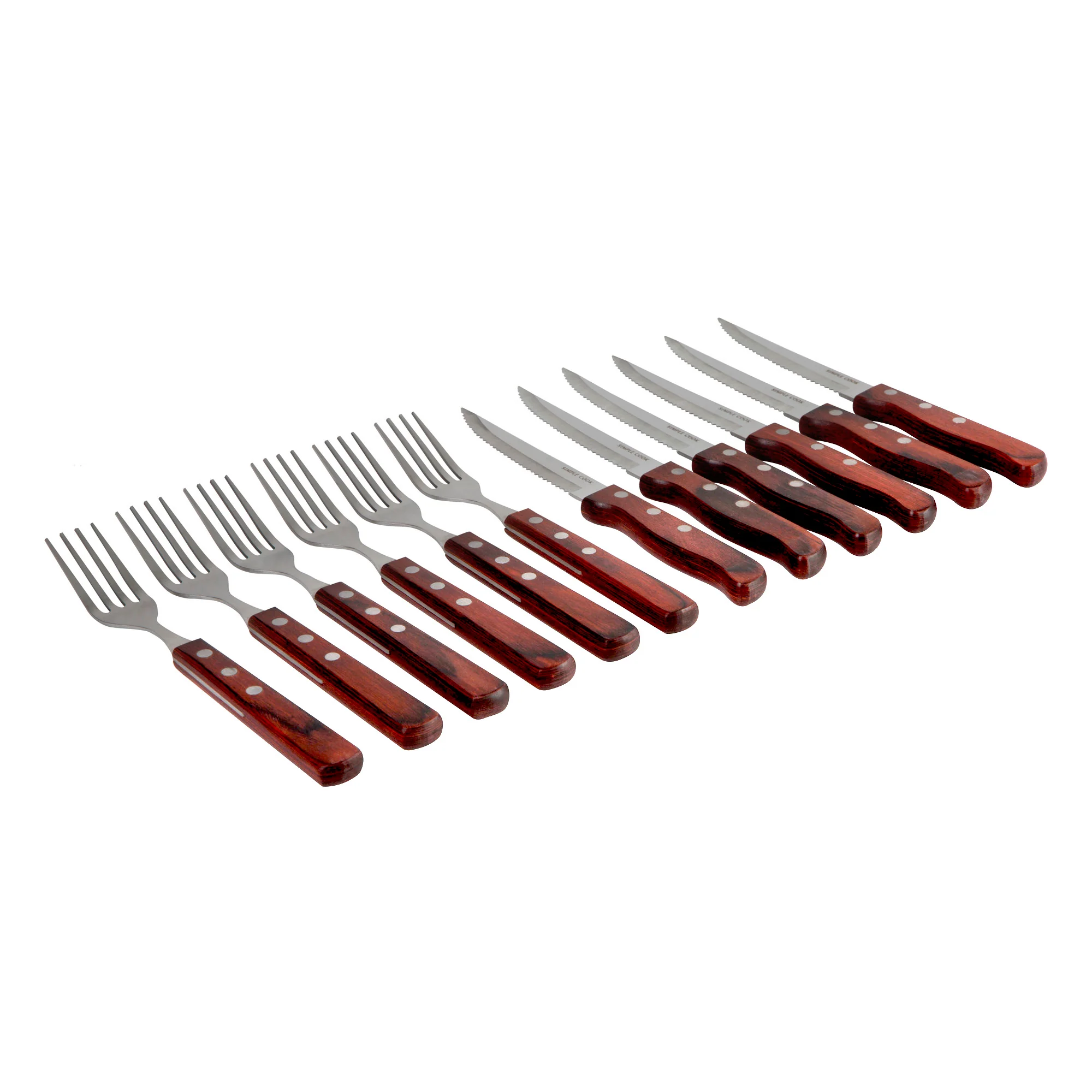 El set de cubiertos Oklahoma rememora el clásico set de cubiertos de toda la vida, pero con tecnología del siglo XXI, mango de madera de Pakka, cuchillos con hojas de acero inoxidable 2Cr13 y acabados satinados en cuchillos y tenedores. Mantén la tradición sin sacrificar modernidad.