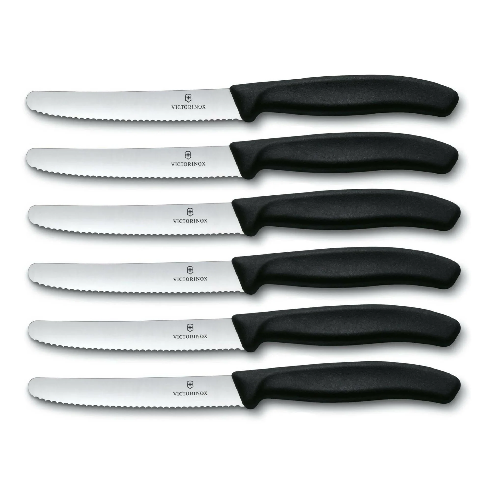 Practicidad, durabilidad y diseño ergonómico clásico en un cuchillo de mesa. Este nuevo juego de cuchillos de mesa y tomates Swiss Classic incluye seis de las mejores hojas en una colección compacta que es ideal para todos los días. Úselo en la cocina para preparar su comida o como una mesa multifuncional para recetas saludables, crujientes o incluso cenas. El filo dentado atraviesa una variedad de texturas suaves y duras como un profesional de corte, y el material apto para lavavajillas le permite disfrutar de la cena de principio a fin.