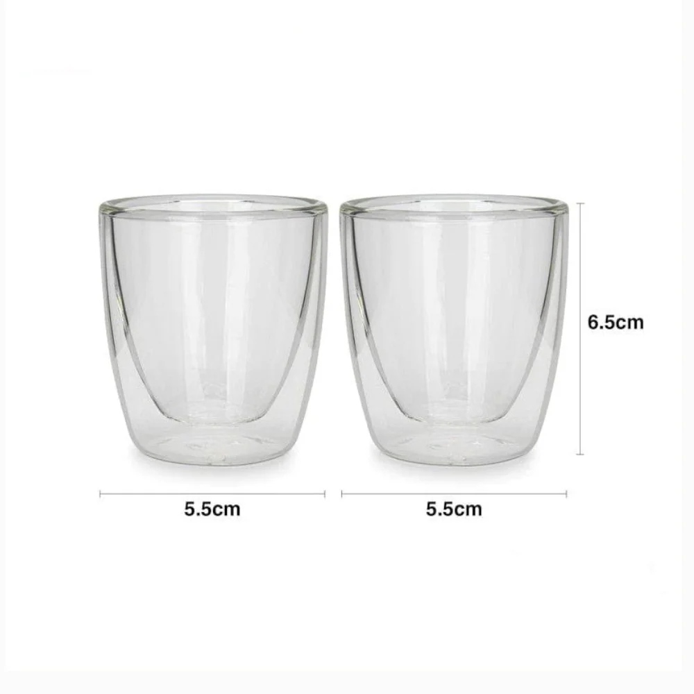 Cada una de estas tazas está diseñada con una capacidad de 80 ml y están fabricadas con vidrio templado de borosilicato, lo que las hace resistentes y transparentes. Estas tazas son ideales para bebidas calientes, como café, té o chocolate caliente, ya que su diseño de doble pared no solo las hace lucir impresionantes, sino que también protege tus manos del calor. Estas tazas son hechas a mano con tecnología de vanguardia que garantiza su calidad y durabilidad. Con un espesor de 3 mm, puedes estar seguro de que estas tazas te servirán durante mucho tiempo. No pierdas la oportunidad de disfrutar de tus bebidas calientes favoritas de una manera elegante y segura. ¡Compra ahora este set de tazas y haz que tus momentos de café sean aún más especiales!