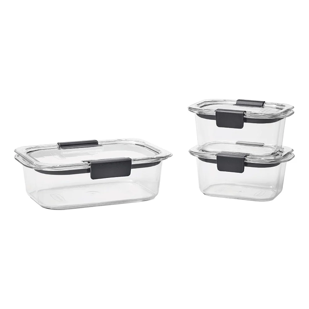 El Set de 3 Contenedores Herméticos 2 x 757 ml y 1 x 1.8 Lt Rubbermaid Brilliance de vidrio para almacenamiento de alimentos están elaborados de forma inteligente y con un bonito diseño. Estos recipientes de vidrio tienen tapas de plástico transparente con un sello 100% hermético a prueba de fugas y pestillos seguros para facilitar el recalentamiento y el almacenamiento. Las rejillas de ventilación integradas debajo de las aletas permiten que escape el vapor para que pueda cocinar en el microondas los alimentos sin salpicaduras y sin quitar la tapa. Las tapas y bases transparentes facilitan ver lo que hay almacenado en el interior. Incluye 3 Contenedores 2 x 757 ml y 1 x 1.8 Lt