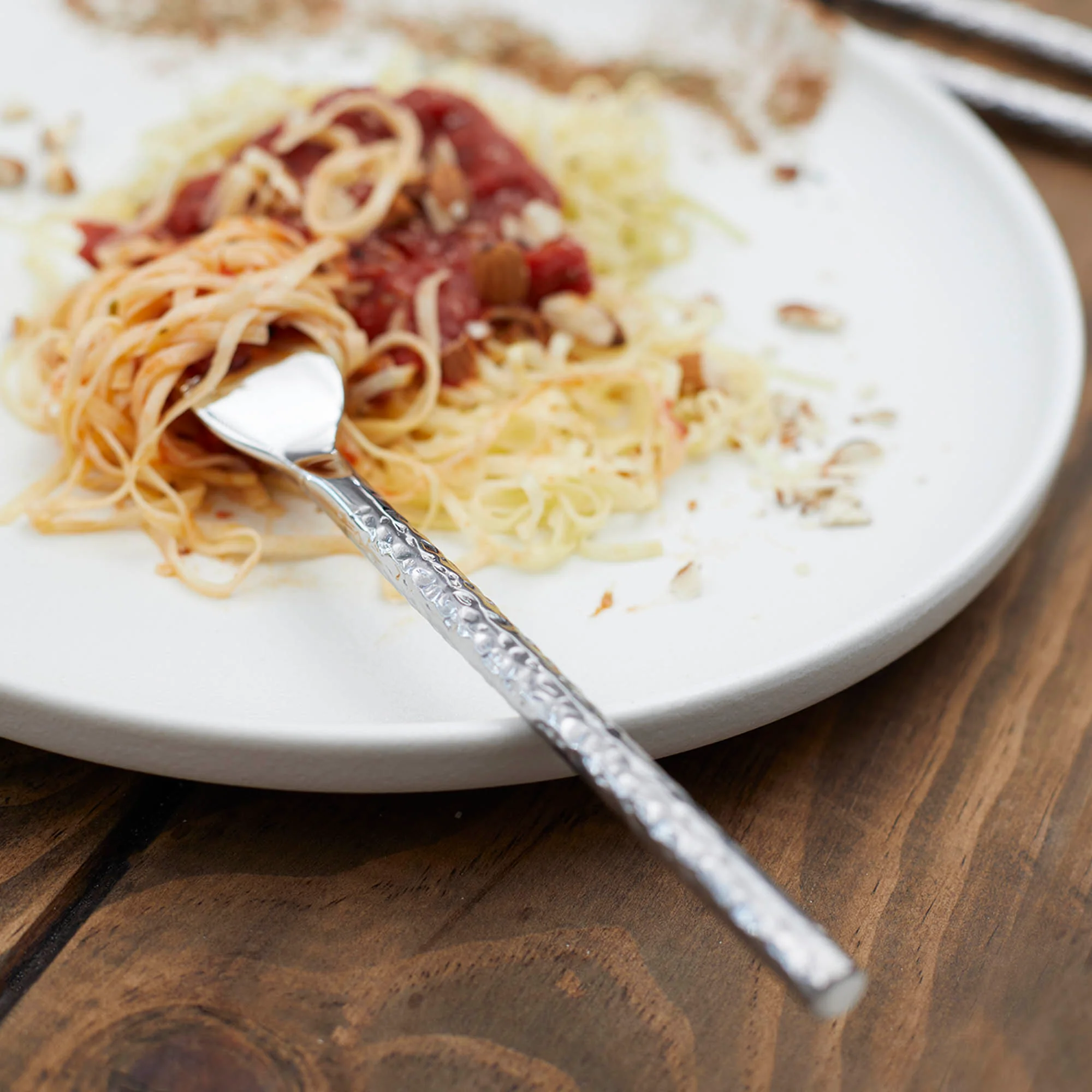 A diferencia de otros sets, el Hammered Coquinaria incluye piezas para postre, una característica única que elimina la necesidad de búsquedas adicionales y refuerza su valor como un set premium. Ideal para quienes valoran el equilibrio entre calidad, diseño y practicidad, este conjunto transforma lo cotidiano en momentos memorables.
