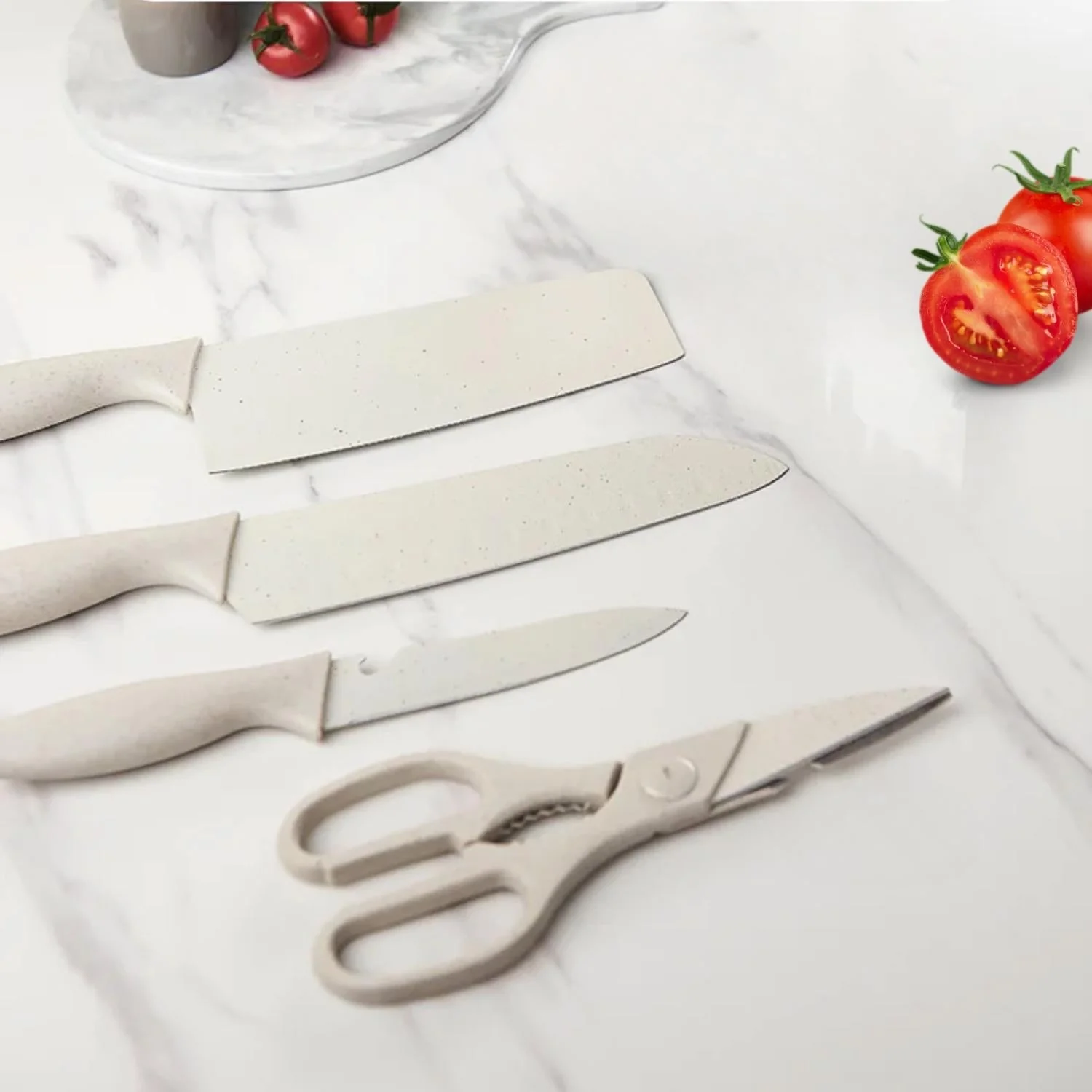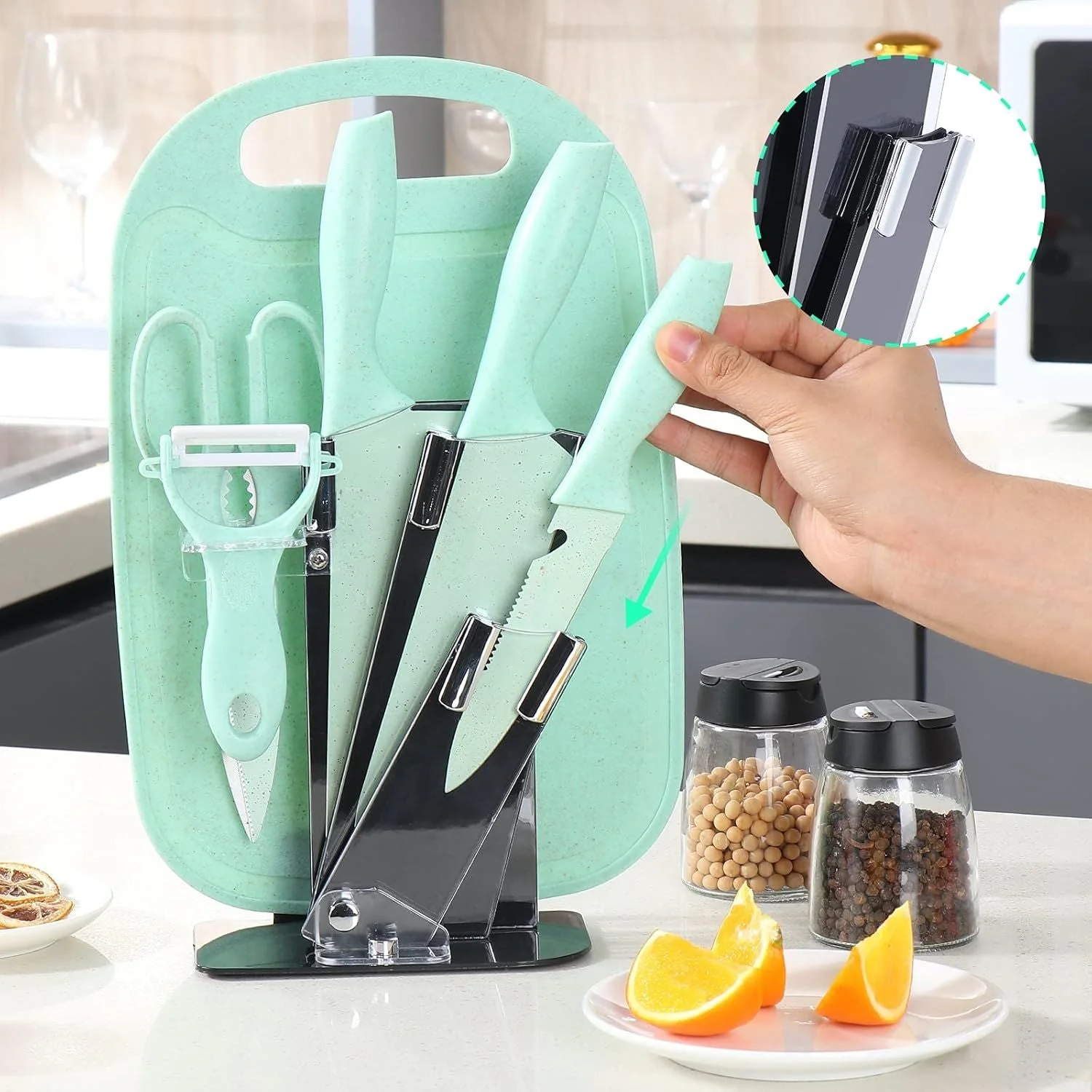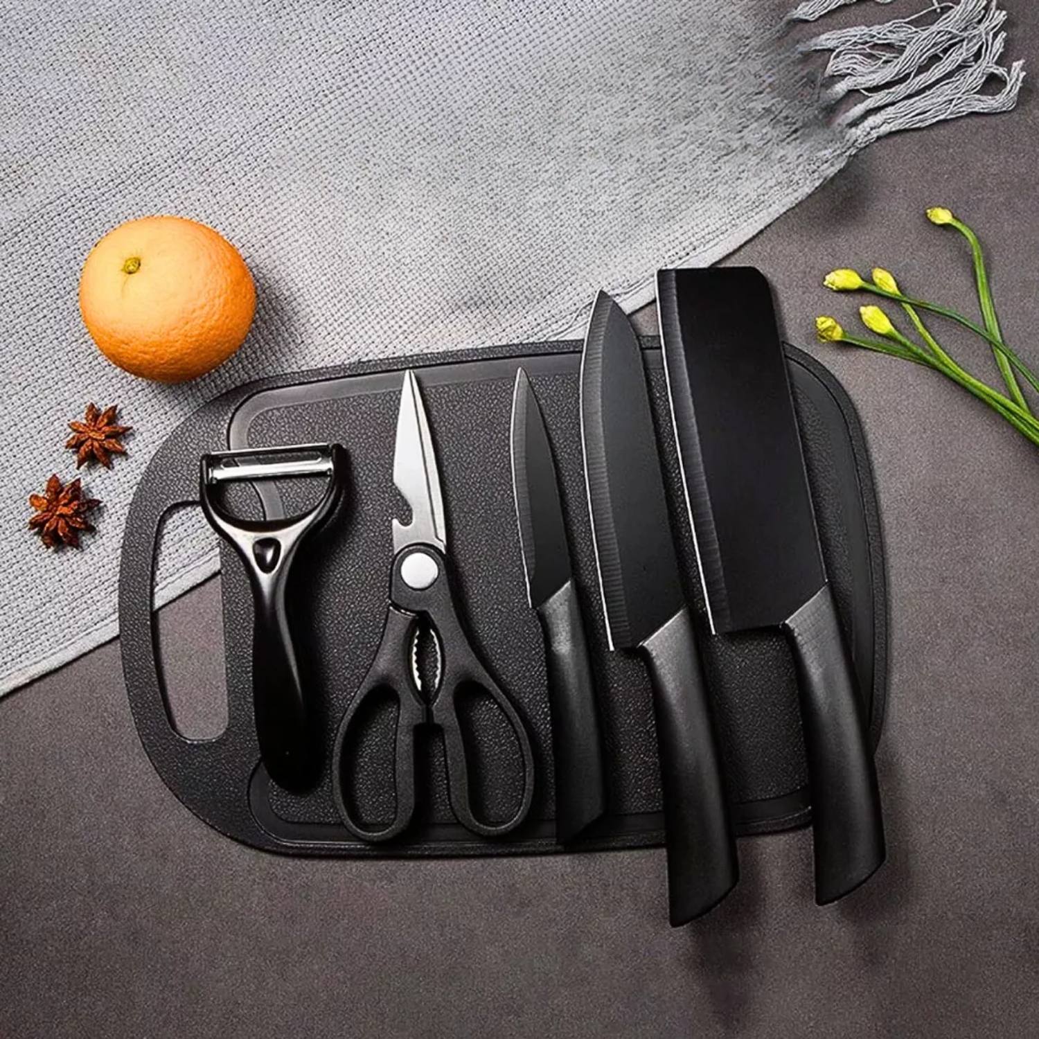 Transforma la preparación de tus comidas equipando tu cocina con estas herramientas esenciales. Cuchillos, Pelador de Papas, Tijera de Cocina, Soporte organizador y Tabla para cortar. Pelar, rebanar, picar y cortar serán una tarea fácil. Cada cuchillo está diseñado con mangos ergonómicos faciles de maniobrar, en tanto la hoja del cuchillo de acero inoxidable; garantiza resultados precisos, y rendimiento a largo plazo. Con diseño a la vista podrás organizar los utensilios en el soporte añadiendo modernidad y estilo, además de la comodidad de estar a la mano. Y la tabla de picar resistente proporciona una superficie estable de trabajo. El Set incluye 1 Cuchillo Pequeño (Puntilla), 1 Cuchillo Grande (Cebollero), 1 Cuchillo Hacha, 1 Pelador de Papas, 1 Tijera da de Cocina, 1 Tabla Para Cortar, 1 Soporte.