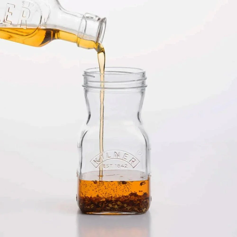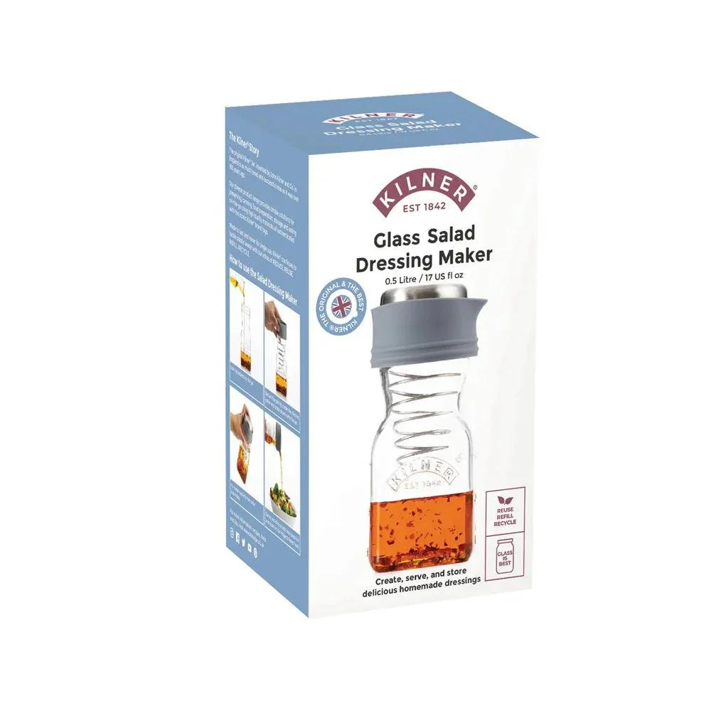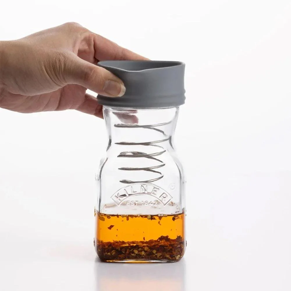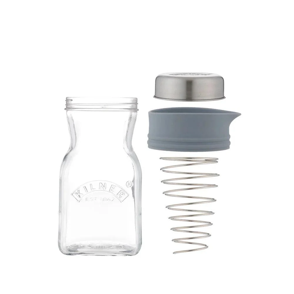 Cree, sirva y guarde deliciosos aderezos para ensaladas, vinagretas y salsas caseras con el juego para preparar aderezos Kilner®. Diseñado para agitarse suavemente, con un resorte interno en espiral de acero inoxidable para mezclar perfectamente las mezclas con un borde incorporado para verter fácilmente.
