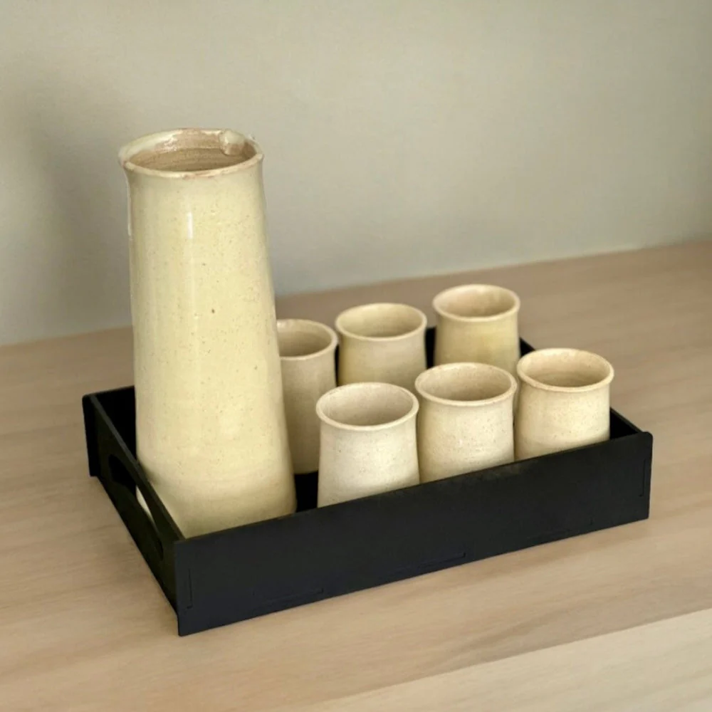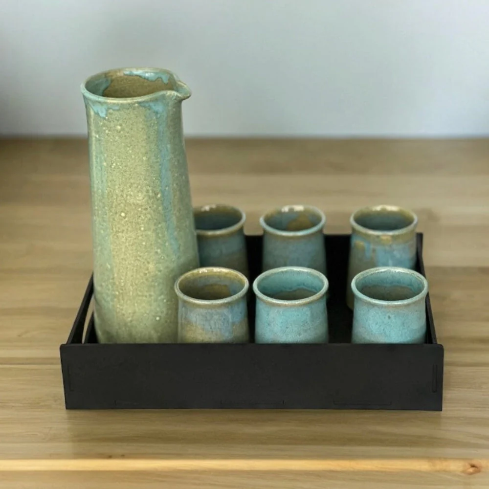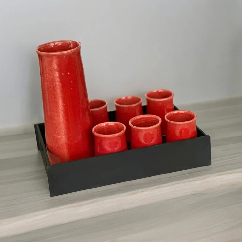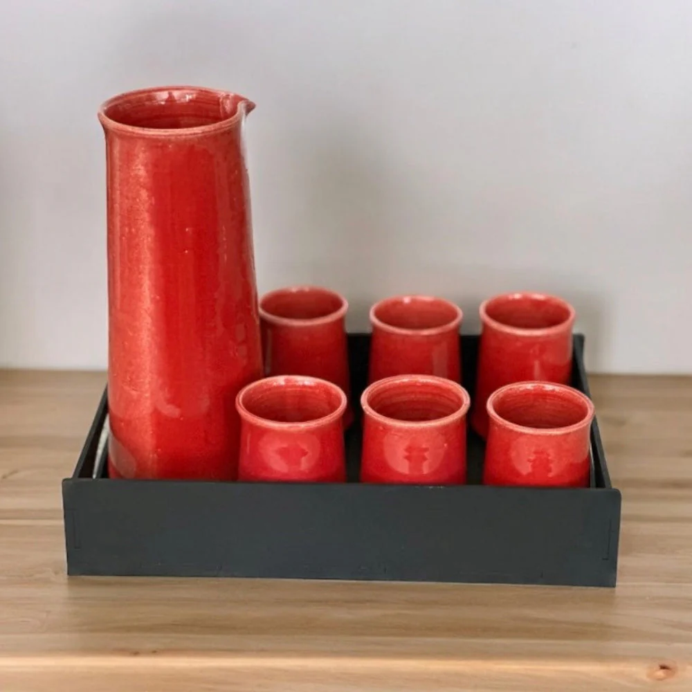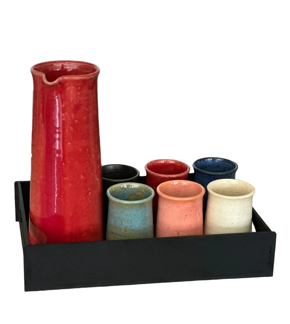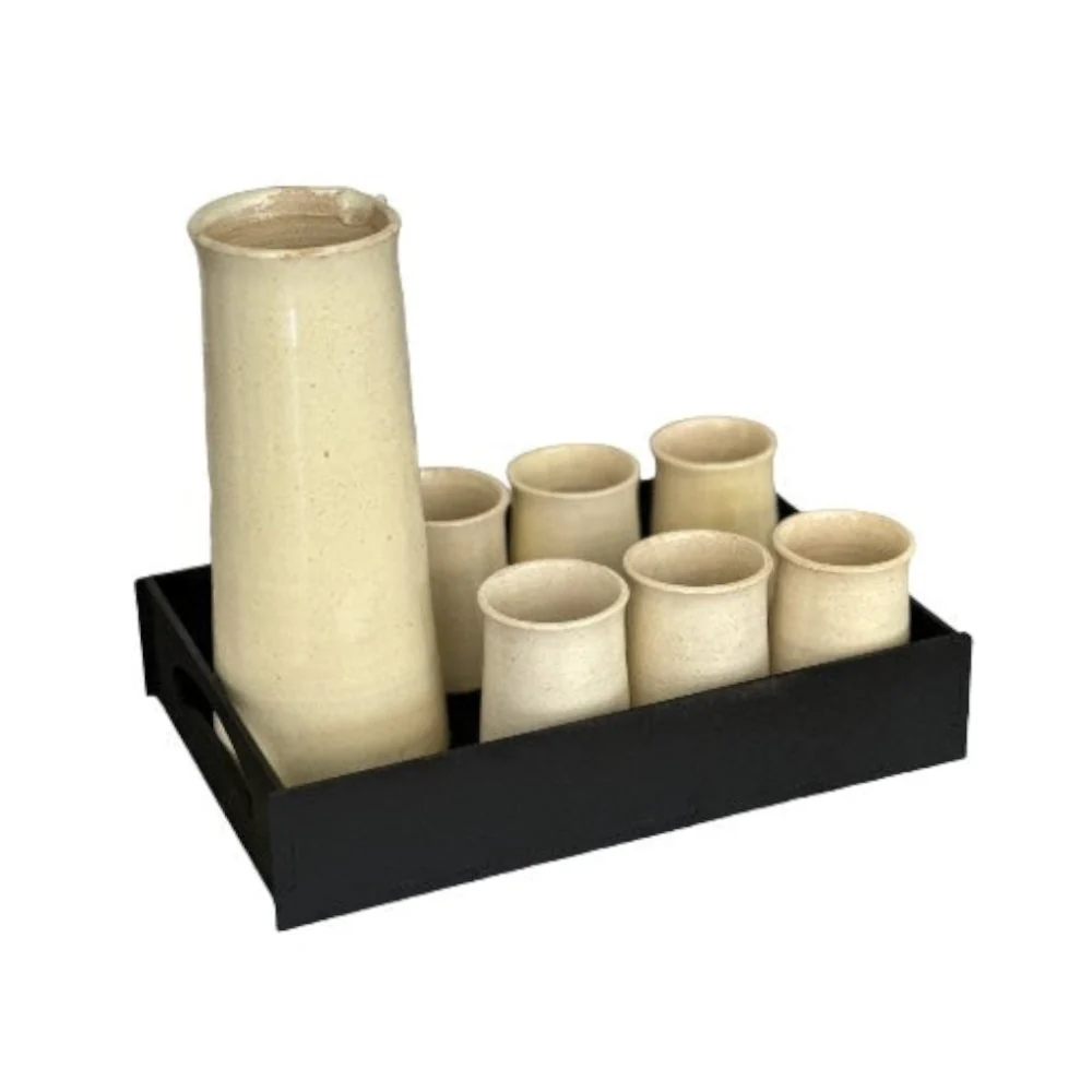 Celebra con estilo con el Set de Pisco Sour en cerámica de Pilar Claro, perfecto para servir tragos, cremas, sopas o postres. Este set incluye un jarro con capacidad de 1.2 litros y 6 vasitos de 160 ml cada uno, acompañados de una elegante bandeja de madera lacada en negro. Hecho a mano en cerámica gres, cada pieza aporta una belleza única a tu mesa. Ideal para reuniones íntimas o como regalo, este set promete convertirse en el centro de atención en cualquier celebración. Invita a la tradición y el buen gusto a tu hogar con este exclusivo set.