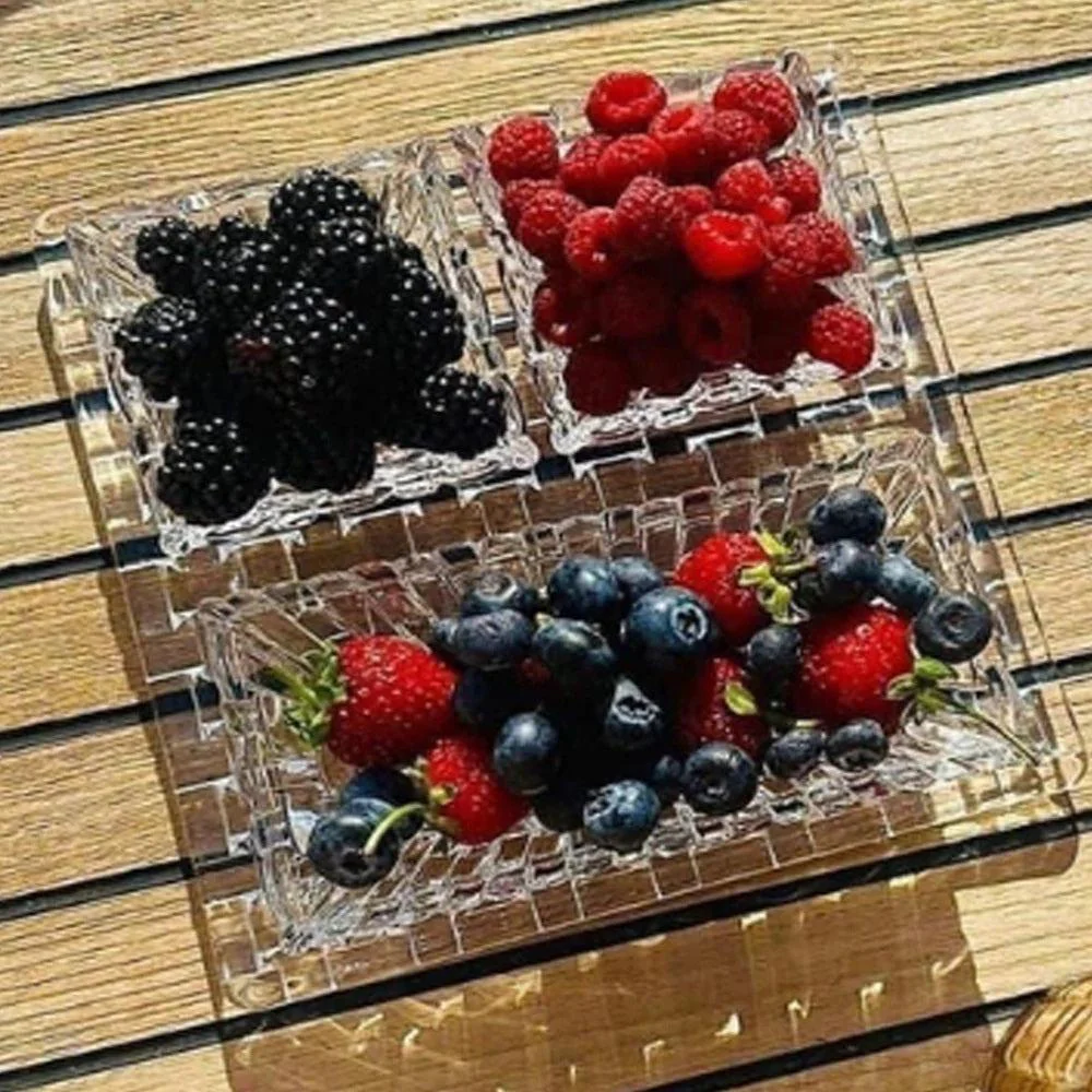 El Set incluye 1 plato cuadrado de 12cms, 1 plato rectangular de 17cms y 2 pocillos de 8,5cms