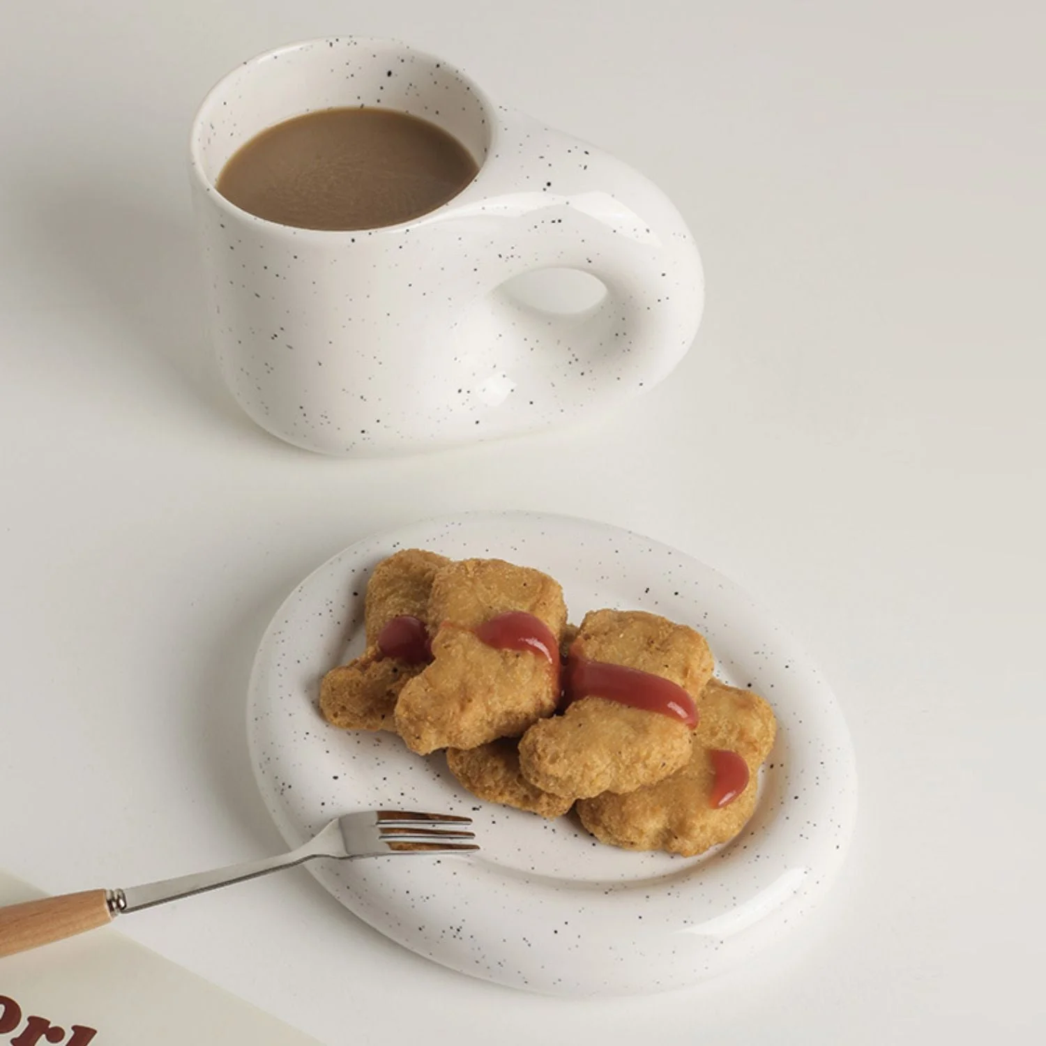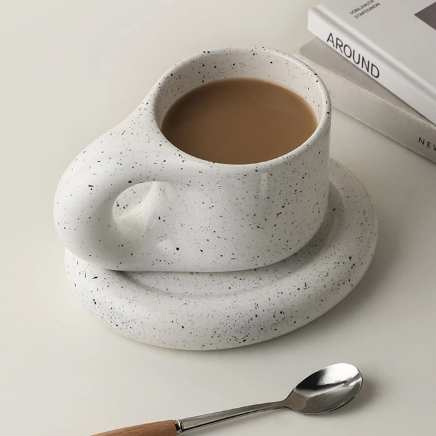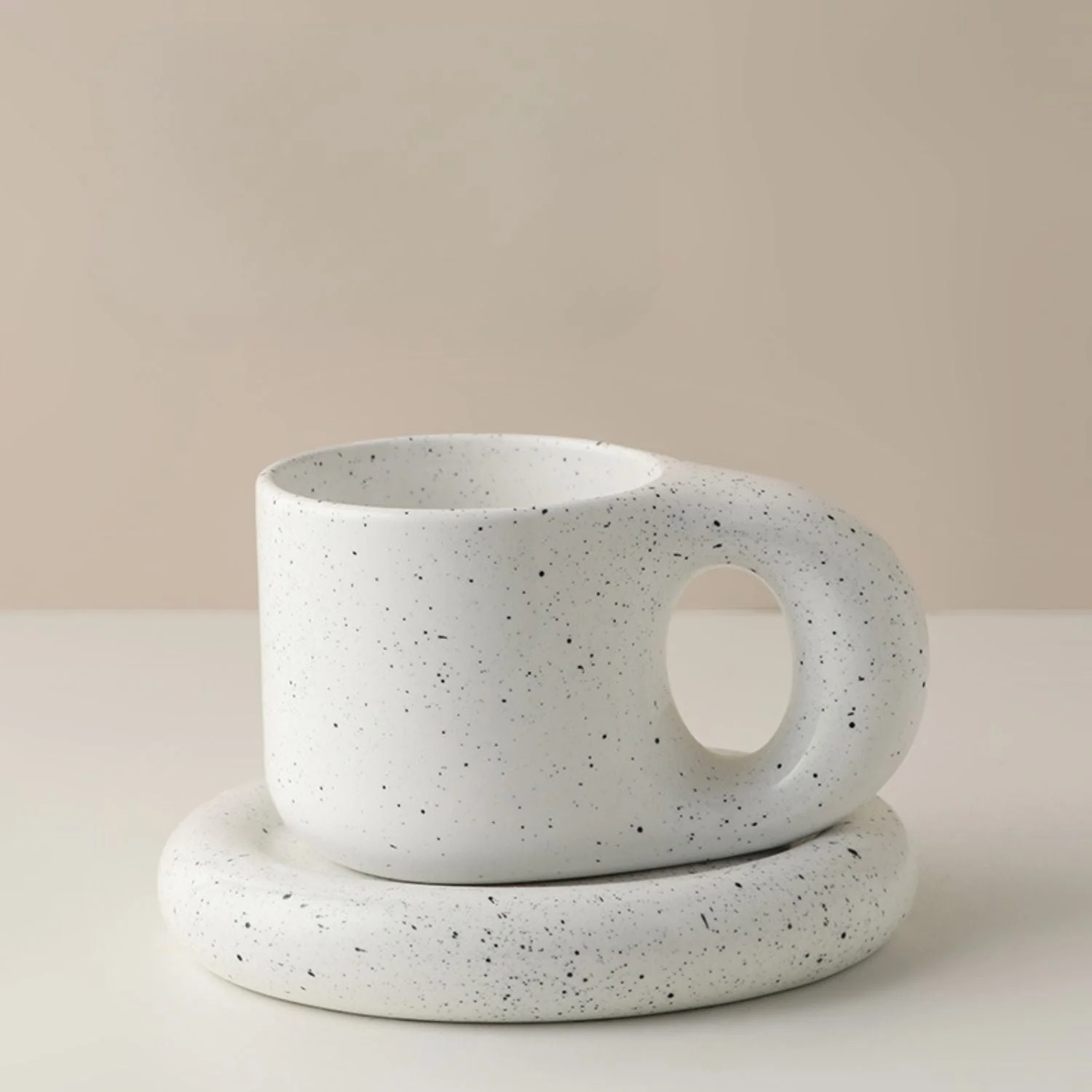 El diseño puede ser parte de tu hogar con este juego de Taza y Plato Cerámica 300ml estilo rústico. Crea un ambiente moderno y minimalista con los accesorios de tu casa o incluso en la oficina. Todos te preguntarán cómo obtener esta novedad. Su ergonomía contiene un mango grande para el sostén cómodo de la taza; su base es lisa y ancha para evitar vuelcos y marcas en la mesa. Incluye un plato de uso versátil para posar la taza o para postres y bocadillos. Su fabricación esmaltada y resistente permiten el uso cotidiano para el consumo de bebidas frías o calientes, es fácil de limpiar y de almacenar. Apta para lavavajillas. El regalo ideal para amigos y familia.