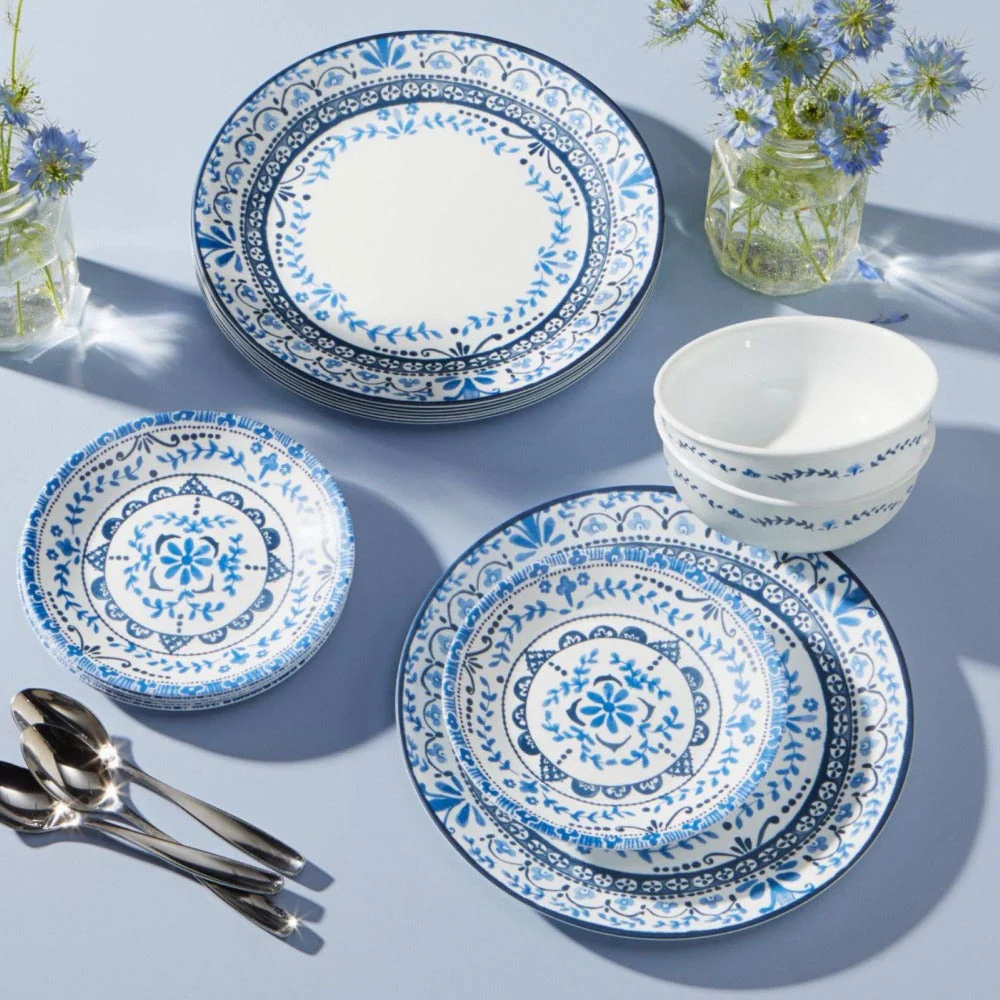 Logra una mesa encantadora con el set de vajilla de la colección Portofino, inspirado en los pueblos costeros de la costa italiana.Los pueblos costeros de la costa italiana inspiraron este intrincado patrón en tonos clásicos de azul. Con la belleza informal de los azulejos pintados a mano, colocará una mesa perfectamente encantadora dentro o fuera.