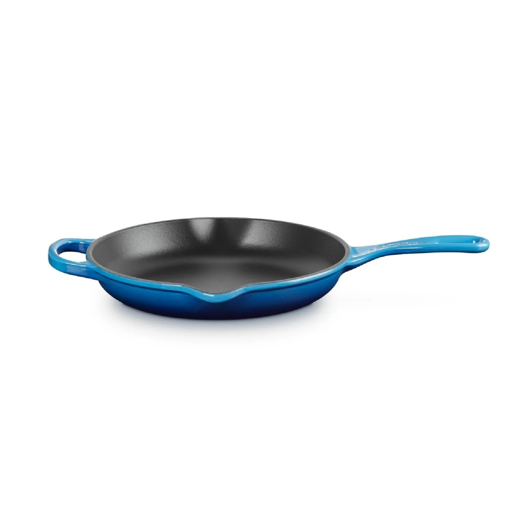 Descubre la Skillet Lisa Azure de 20 cm de Le Creuset, una herramienta esencial en cualquier cocina moderna. Esta skillet, favorecida tanto por chefs profesionales como por cocineros aficionados, cuenta con un esmalte interior negro mate que permite dorar los alimentos a la perfección, ofreciendo resultados excepcionales. Su versatilidad es incomparable: úsala en fogones, bajo el grill o en el horno para marcar, dorar o tostar una variedad de platos.