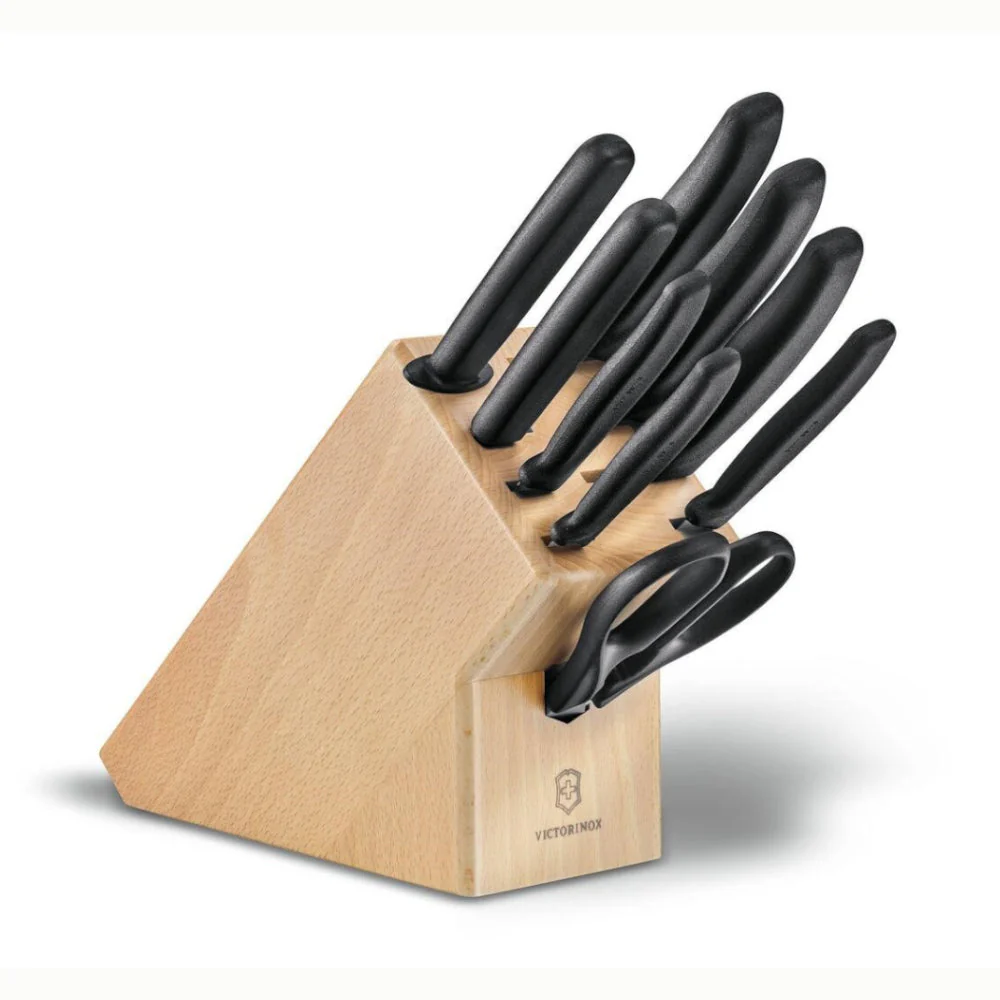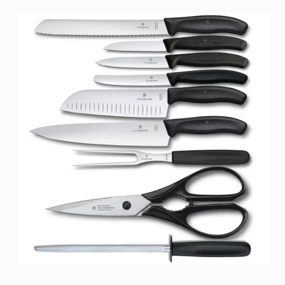 Optimiza tu espacio de cocina y eleva tus habilidades culinarias con el Soporte para Cuchillos Swiss Classic de 9 piezas de Victorinox, un complemento esencial y estéticamente agradable para tu barra de cocina. Compacto pero sorprendentemente capaz, este soporte no solo organiza tus herramientas de corte, sino que también inspira creatividad en tus preparaciones culinarias. Es el centro perfecto para cortar, picar y rebanar, ayudándote a mejorar tu destreza en la cocina. Este soporte alberga nueve hojas de alta precisión, incluyendo cuchillos mondadores, de mesa, para pan, Santoku, para trinchar, así como tijeras de cocina y chairas, cada una diseñada para facilitar y mejorar tu experiencia culinaria. Adquiere este soporte y disfruta de la comodidad y eficiencia de tener tus cuchillos Victorinox, reconocidos por su precisión y calidad, siempre a mano. Con el Soporte para Cuchillos Swiss Classic, cada preparación se convierte en una oportunidad para demostrar tu habilidad y pasión por la cocina.