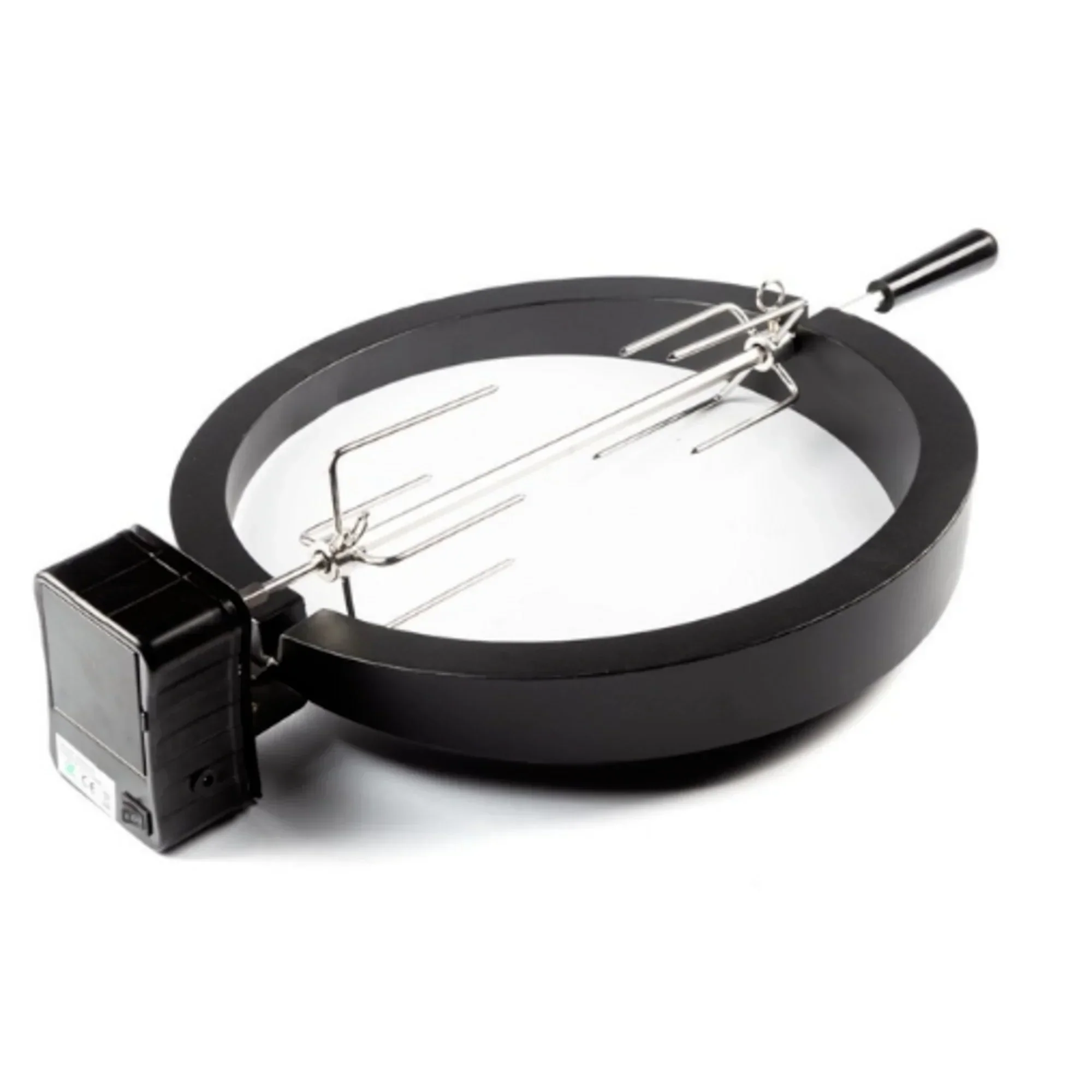 Su diseño proporciona un ajuste óptimo al Kamado Argentino y permite el cierre de la cúpula para retener el calor. Incluye pincho con horquillas ajustables, siendo muy sencillo colocar y limpiar. Está fabricado en aluminio de fundición, es resistente y liviano, cuenta con un motor potente y silencioso. Opción de alimentación con tres pilas «AA» o transformador a 220V (no incluidos). No incluye baterías ni transformador.