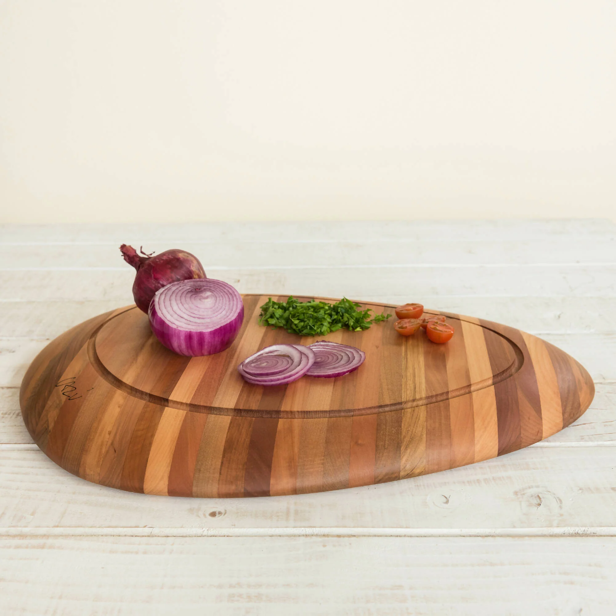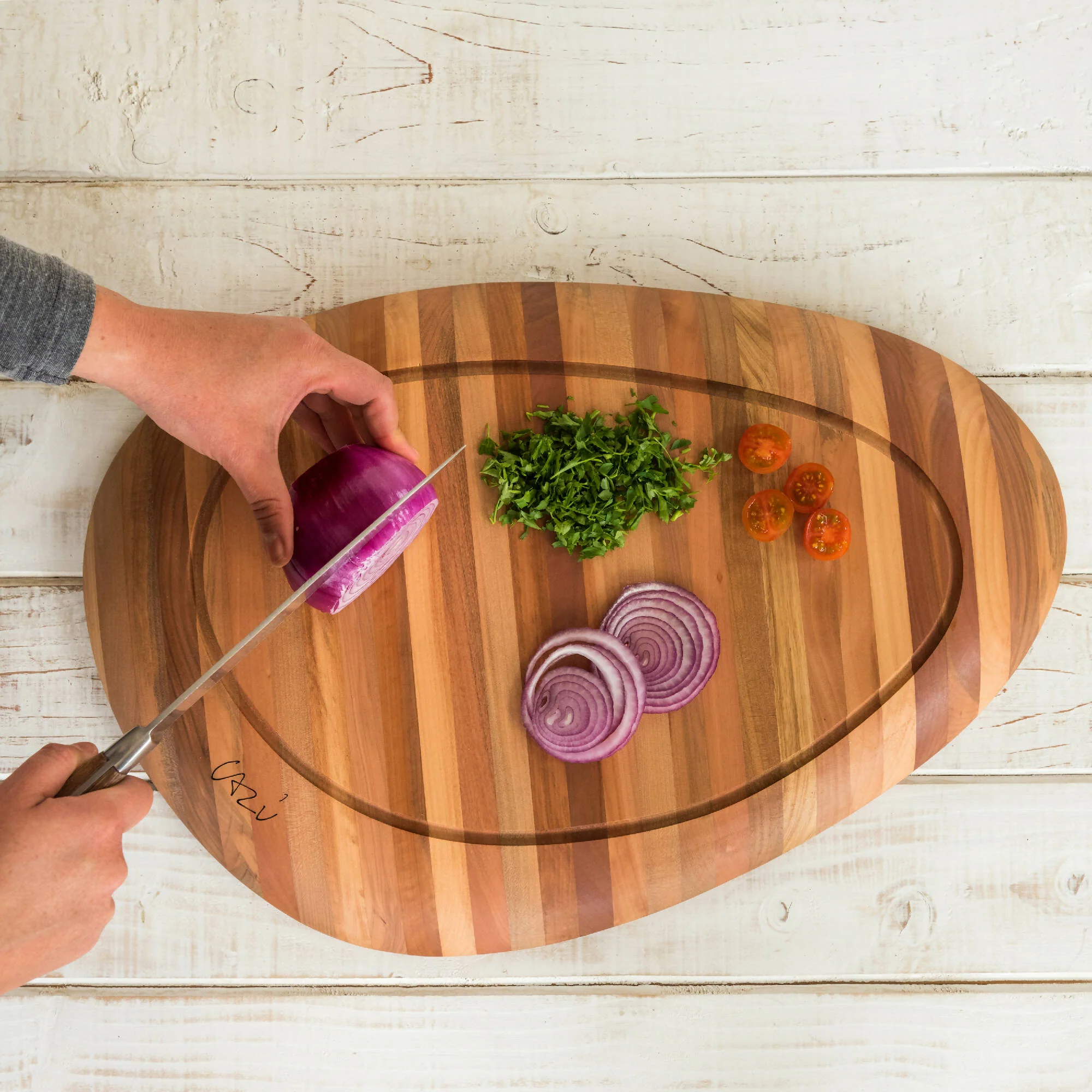 La tabla de corte ALMA es diseño de la arquitecta Cazú Zegers, reconocida internacionalmente por su obra, marcada por el uso de la madera, la valoración del paisaje, territorio y procesos locales. A través del diseño de estos objetos, Cazú busca llevar el alma y materia de los árboles y bosques del sur de Chile a los hogares del mundo. Fabricadas con despuntes de madera nativa de origen sostenible, las tablas ALMA de Woodnic reflejan un uso eficiente de los recursos con insumos aptos para el contacto con alimentos y que favorezcan su durabilidad en el tiempo. Por un lado, tiene una superficie lisa que da la sensación de flotar en el aire para dar una superficie de trabajo amplia y agradable. Por el otro lado, posee una ranura que permite recoger los jugos de los alimentos que se cortan.