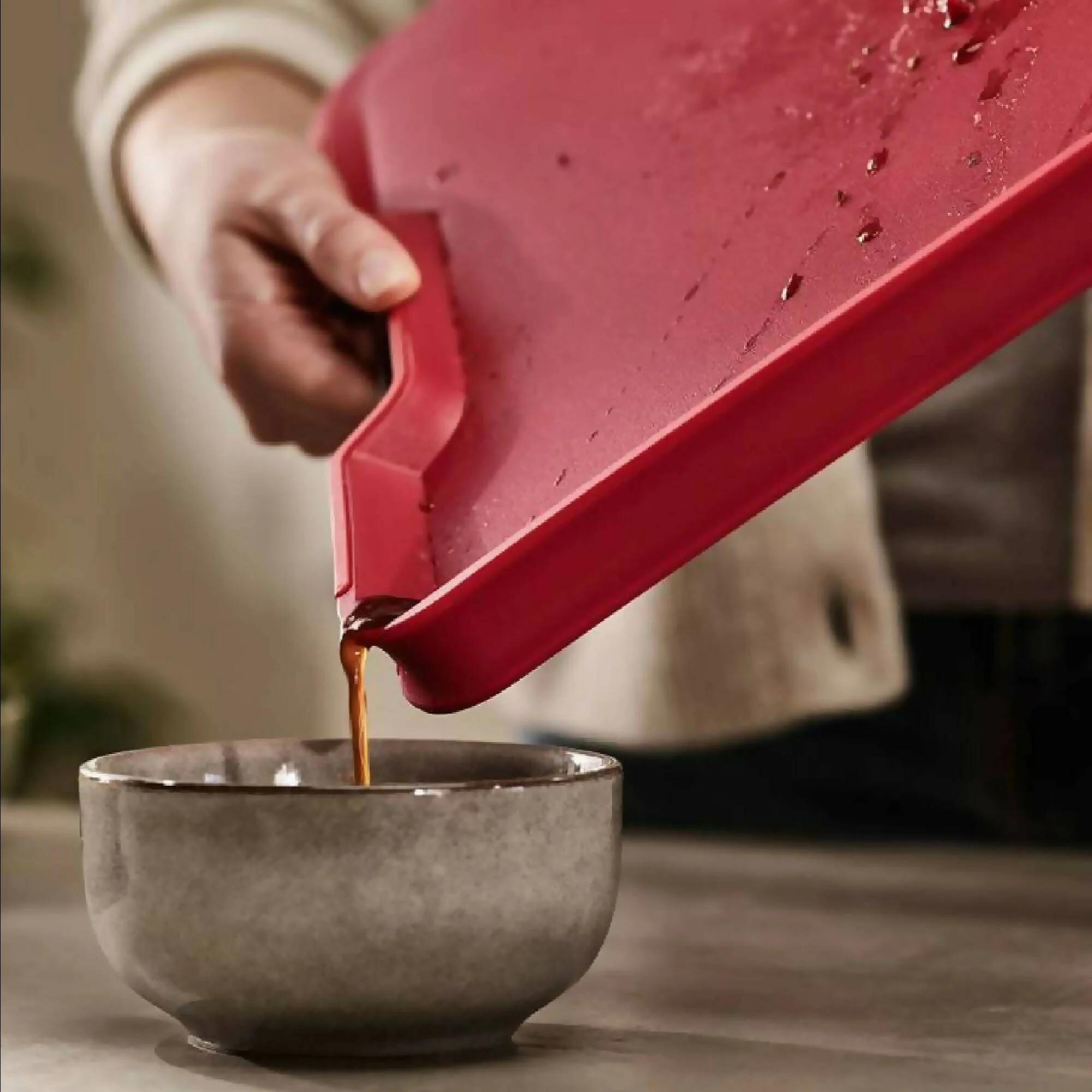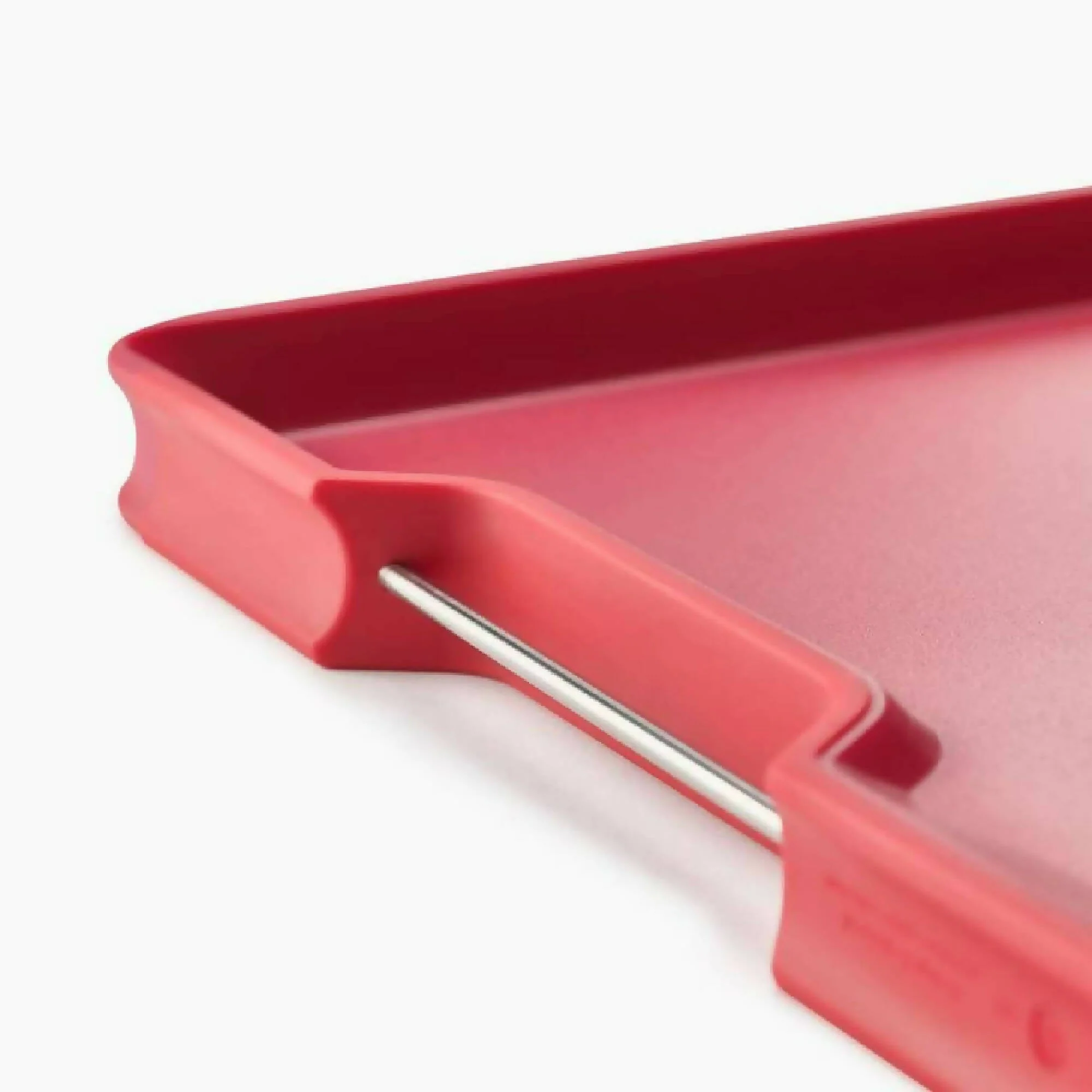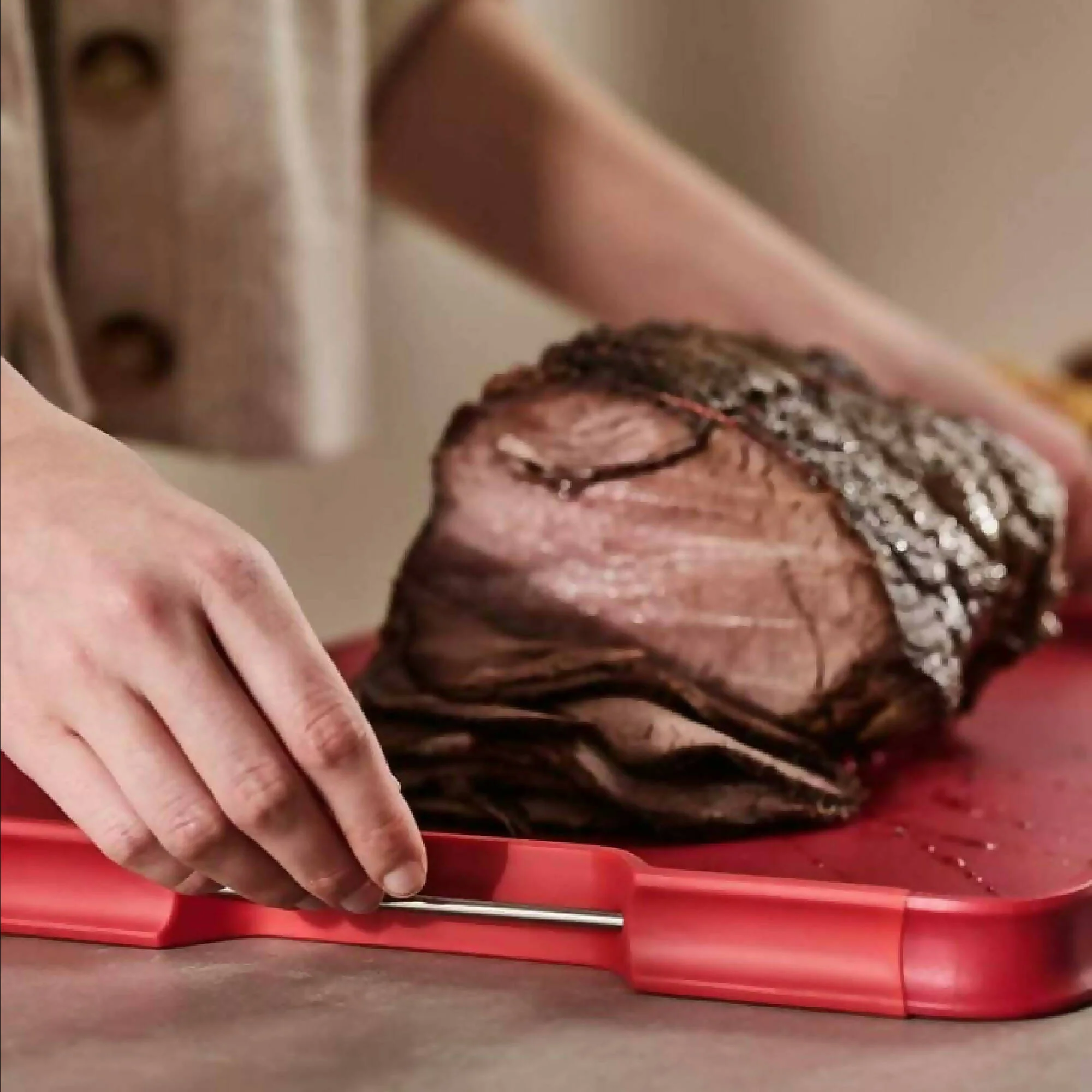 La Tabla Multifunción Plus XL Joseph Joseph tiene 2 lados con distintos propósitos. El lado liso sirve para cortar y preparar todo tipo de ingredientes. El lado opuesto tiene puntas en el centro que ayudan a afirmar la carne para poder cortarla. Además, su superficie en ángulo y bordes altos ayudan a recolectar el jugo de la carne y verterlo fácilmente gracias a sus esquinas redondeadas. Por último, tiene mangos de acero inoxidable, borde de goma antideslizantes y es apta para lavavajillas.