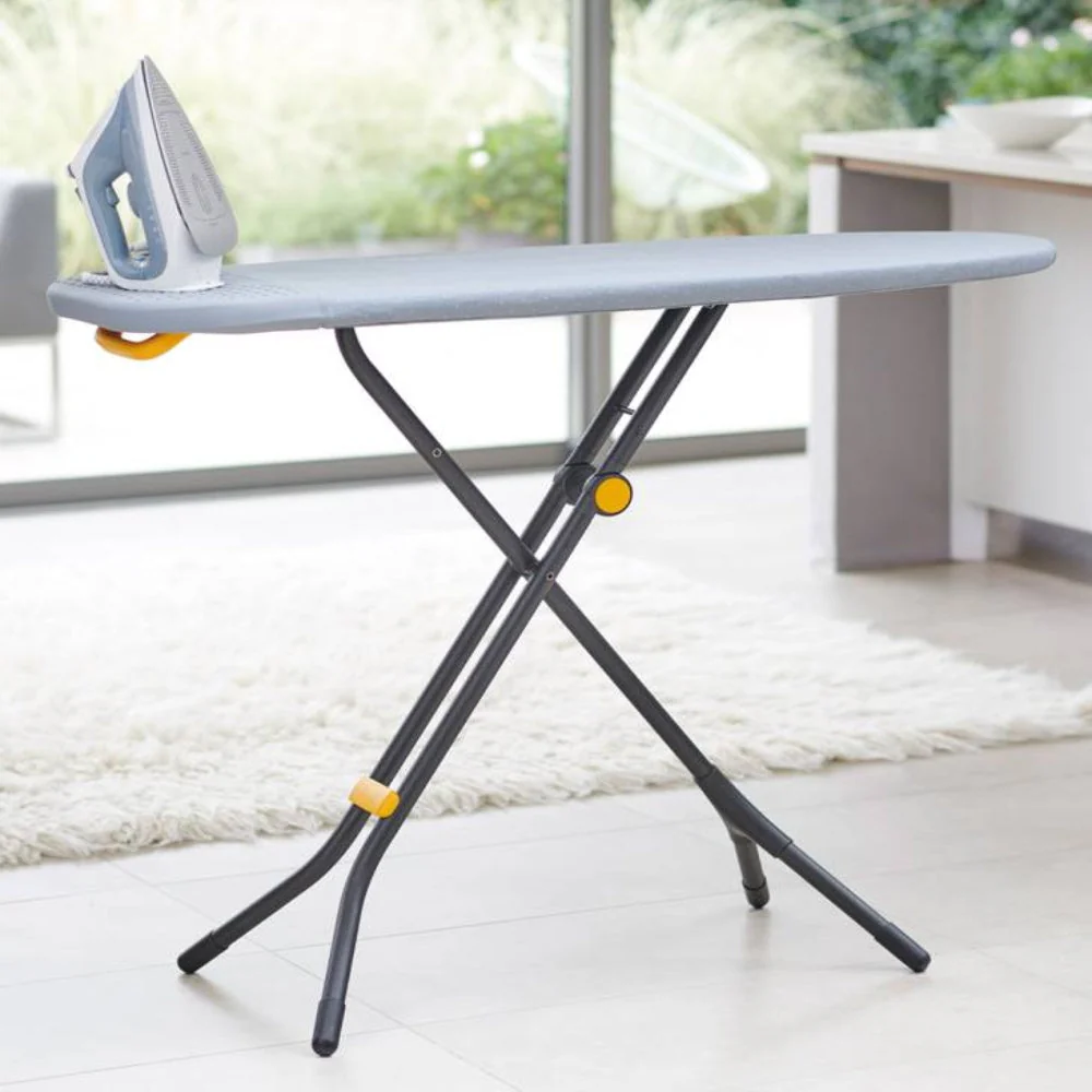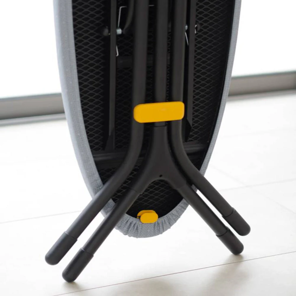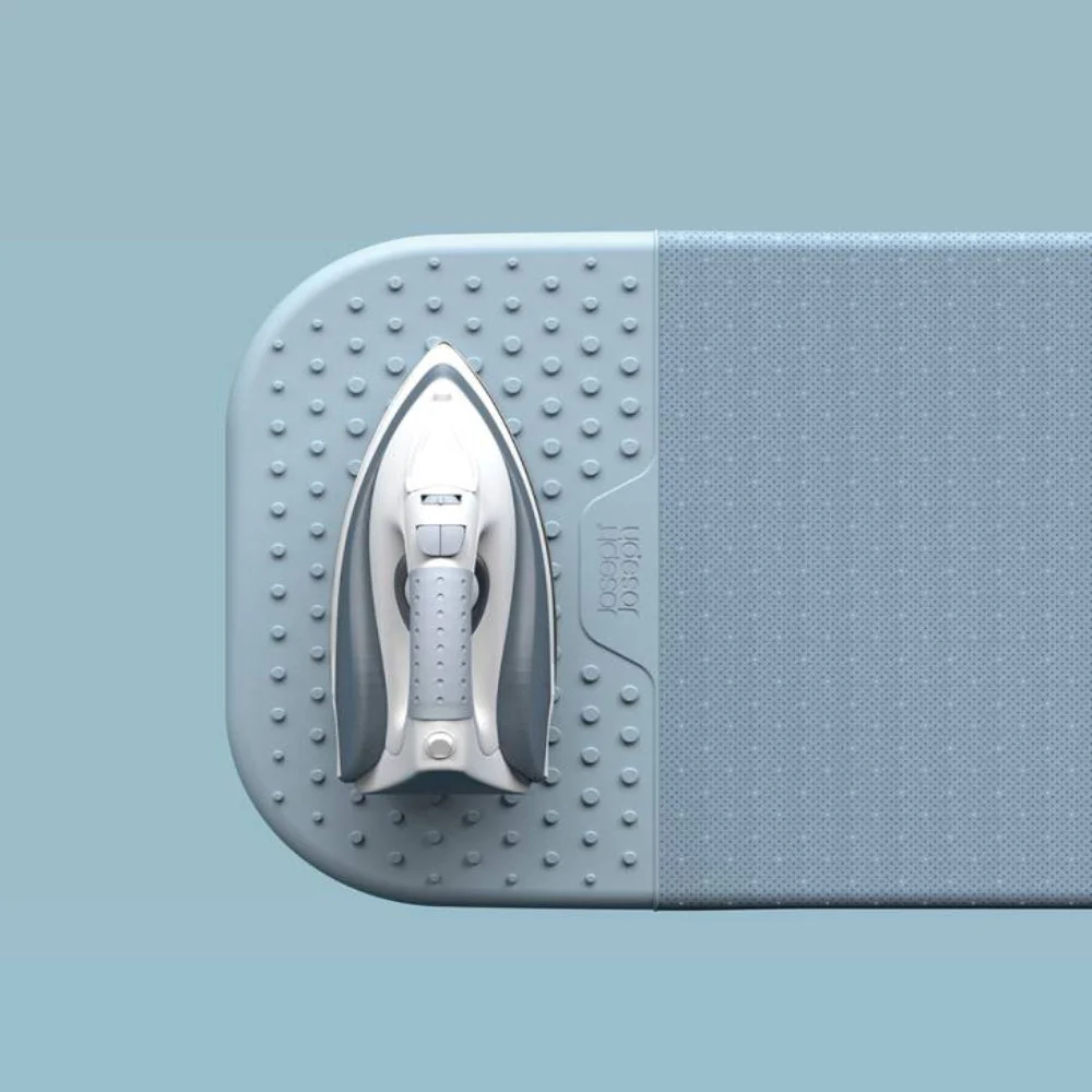 La innovadora Tabla Planchar Glide Joseph Joseph tiene el tamaño de una tabla de planchar regular pero se pliega de manera compacta para poder guardarla usando poco espacio. Sus patas se abren de manera muy fácil para armarla rápidamente y tiene 7 posiciones diferentes de altura desde 84cm a 99cm. La tabla incluye en uno de sus extremos una superficie de silicona resistente al calor para dejar la plancha caliente mientras no la estás usando. Además, incluye un gancho especial que se monta en la puerta o pared para colgarla y guardarla usando muy poco espacio.
