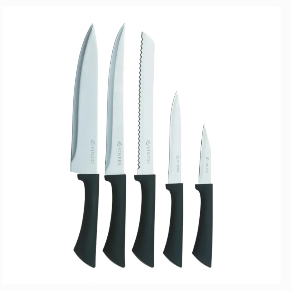 Eleva tu cocina con el Taco de 6 Cuchillos Everyday de Viners, una combinación de funcionalidad y estilo. Este set incluye cuchillo de chef (20 cm), cuchillo para pan (20 cm), cuchillo de trinchar (20 cm), navaja multiusos (13 cm) y cuchillo para pelar (9 cm). Cada cuchillo cuenta con hojas de acero inoxidable de alta calidad, resistentes a la oxidación y diseñadas para mantener su filo por más tiempo. Sus mangos suaves al tacto ofrecen un agarre cómodo y seguro. El bloque compacto y estilizado, con un lado de acrílico transparente, garantiza un almacenamiento seguro y accesible. Con más de 110 años de historia, Viners es una marca británica icónica reconocida por su calidad y tradición. Añade precisión y elegancia a tu cocina con este taco de cuchillos, diseñado para destacar en cualquier hogar.