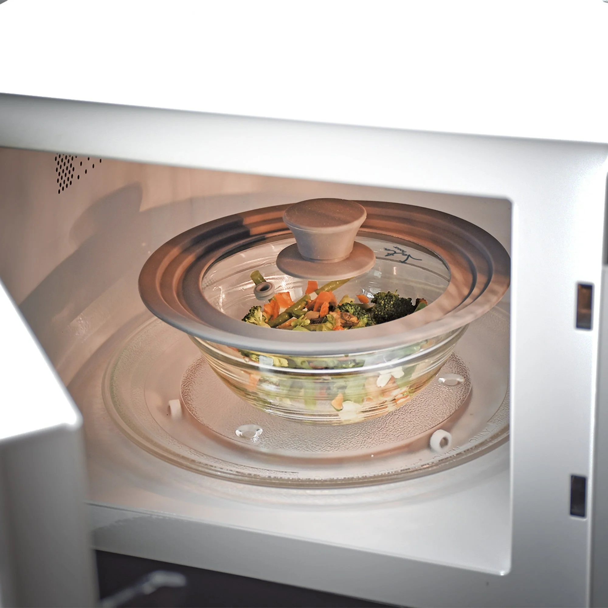 Tapa universal de vidrio temperit y silicona. Sin componentes metálicos, apta para el microondas y lavavajillas. Es multifuncional, por tanto aplica para sartenes, ollas, etc. Higiénico y saludable, cumple normativa FDA. Válvula de salida de vapor. Apta para diámetros de: 20 – 22 – 24 cm