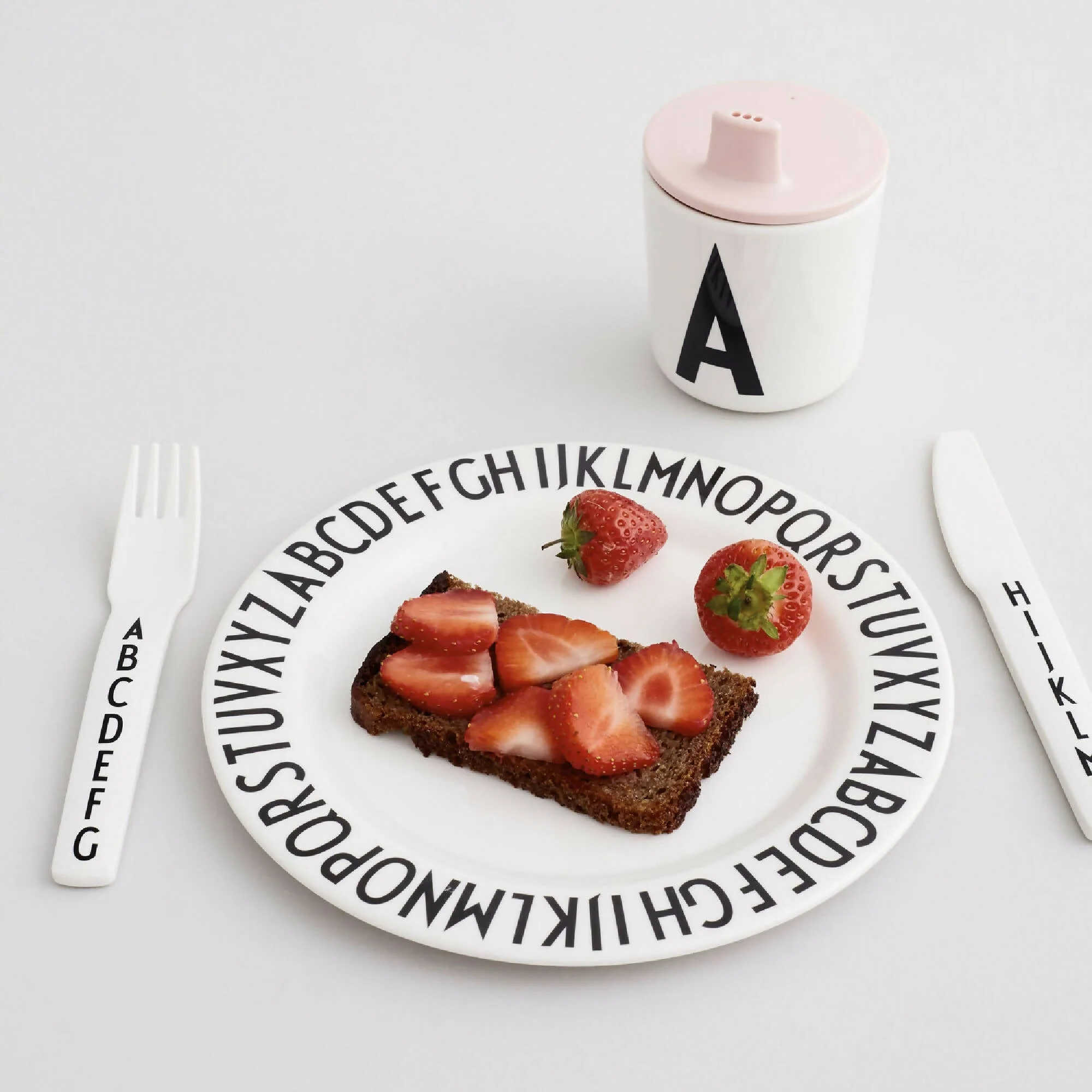 Taza de melamina personal para bebés, niños pequeños y niños en edad escolar decorados con la famosa tipografía creada por Arne Jacobsen en 1937 . Elige la inicial de tu hijo o simplemente su letra favorita!