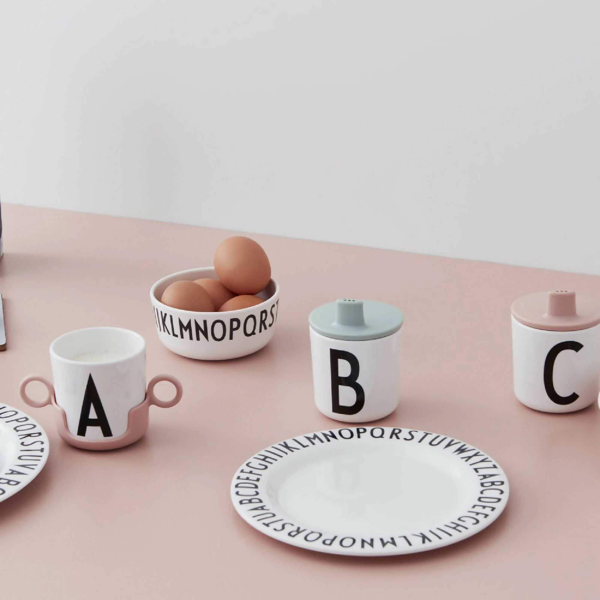 Taza de melamina personal para bebés, niños pequeños y niños en edad escolar decorados con la famosa tipografía creada por Arne Jacobsen en 1937 . Elige la inicial de tu hijo o simplemente su letra favorita!