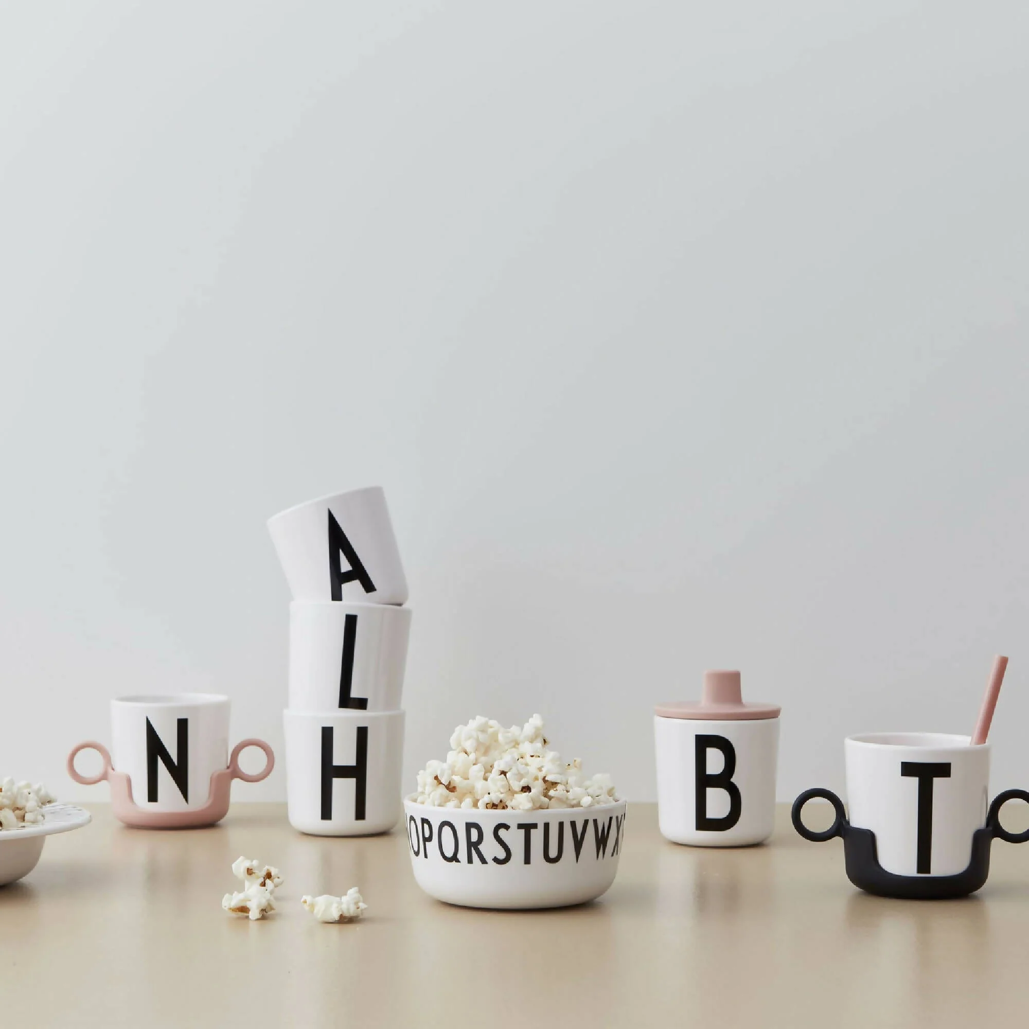 Taza de melamina personal para bebés, niños pequeños y niños en edad escolar decorados con la famosa tipografía creada por Arne Jacobsen en 1937 . Elige la inicial de tu hijo o simplemente su letra favorita!