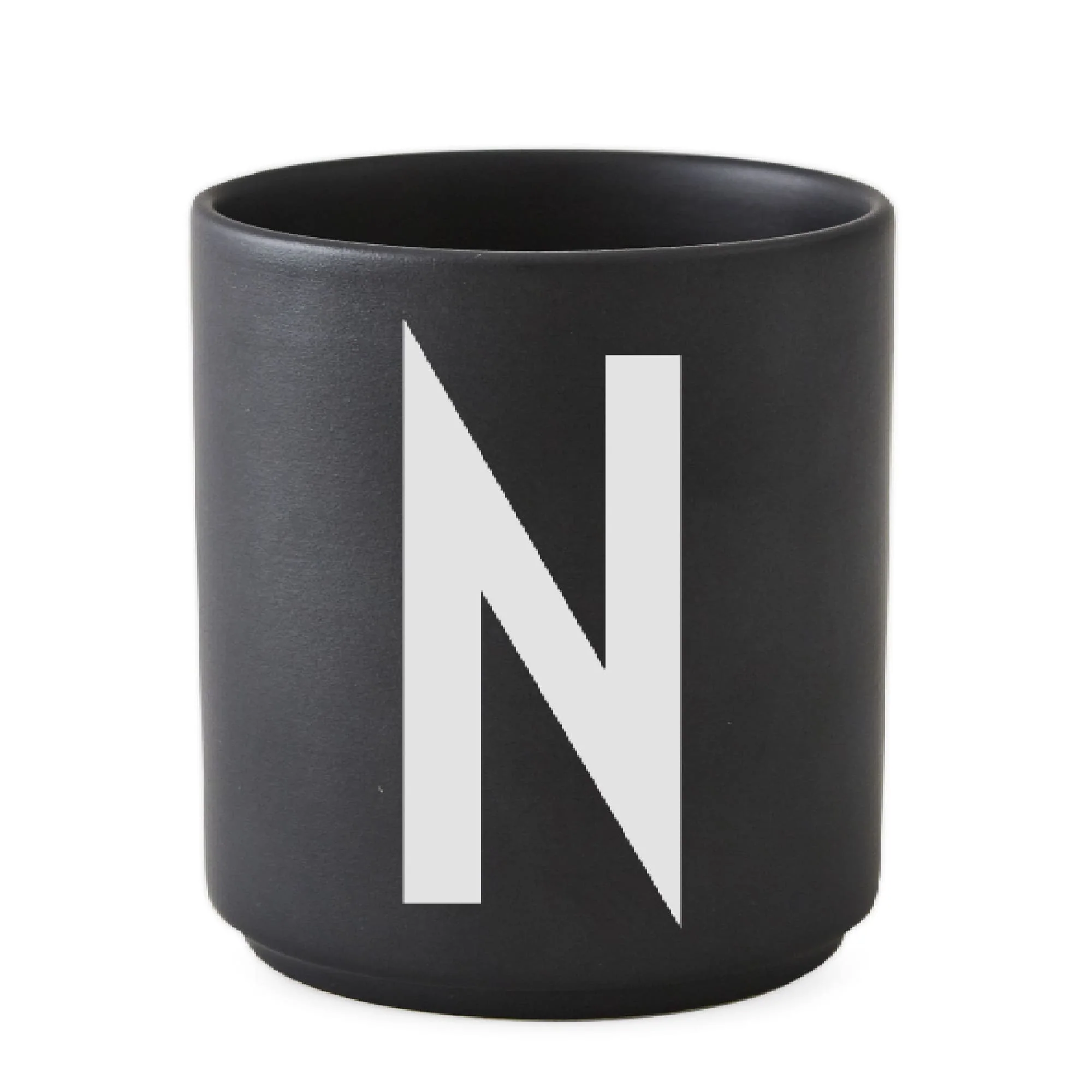 Eleva el estilo de tus momentos cotidianos con la taza de porcelana negra de Design Letters. Disponible en todas las letras de la A a la Z, esta pieza no solo sirve para tus bebidas favoritas, calientes o frías, sino que también se transforma en un contenedor único para lápices, flores, o tu cepillo de dientes. Ideal para personalizar espacios, desde recepciones hasta escritorios y cocinas, permite que te expreses y te diviertas con la icónica tipografía del diseñador Arne Jacobsen. Una adición versátil y elegante a tu colección, perfecta para regalar o personalizar tu hogar.