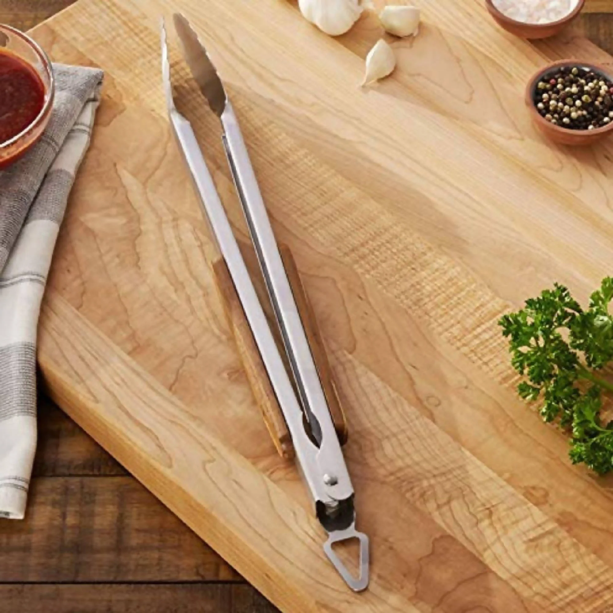 Esta pinza de 18″ mantiene sus manos alejadas del calor peligroso, es extra ancha y el mango está hecho de bambú tigre impresionante. Las pinzas también tienen un mecanismo de bloqueo para mantenerlas cerradas de manera segura cuando no se usan. Los mangos de bambú de tigre criados en granja brindan un agarre fresco y cómodo lejos de la fuente de calor. El mecanismo de bloqueo une las pinzas para un almacenamiento fácil y seguro. Fabricado con un 1OO% de materiales sostenibles (incluido el embalaje).