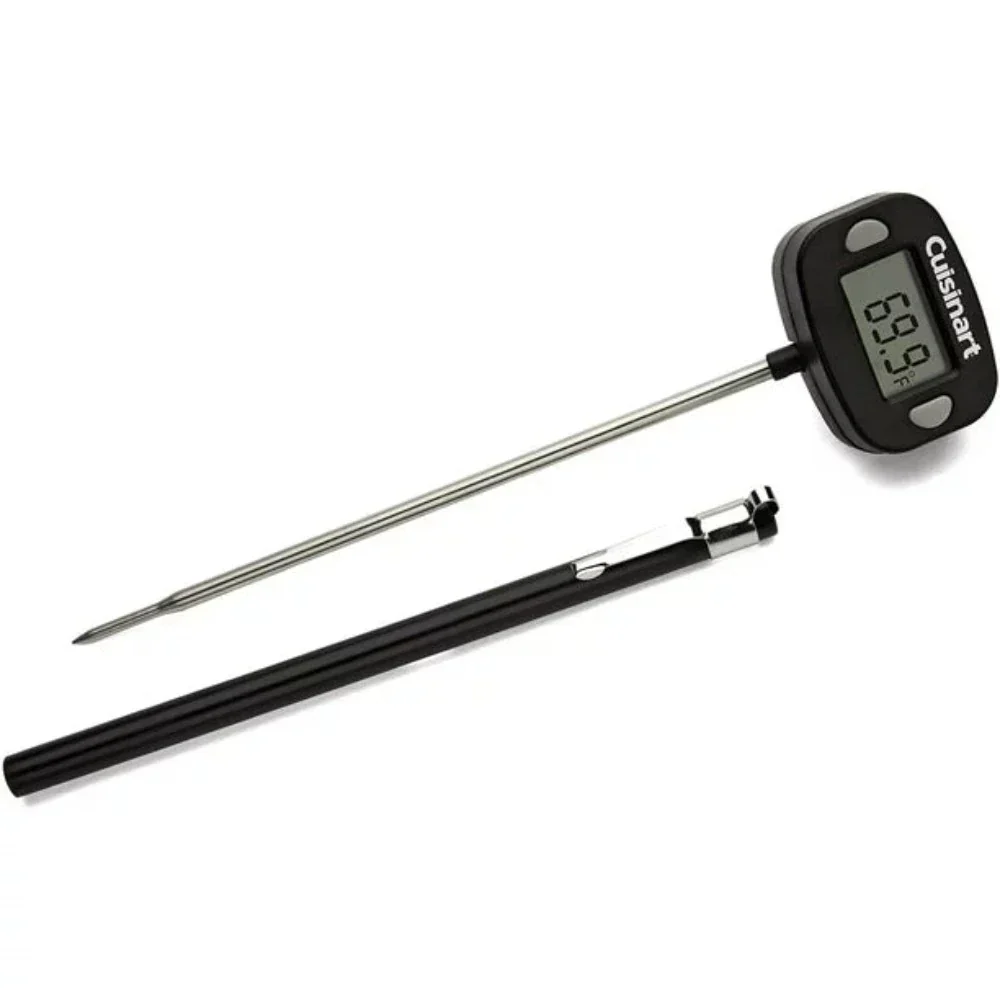 El termómetro digital para BBQ CSG-111 de Cuisinart es una herramienta sencilla y eficaz para verificar si tus carnes asadas están listas. Cuenta con una pantalla LCD que proporciona una lectura instantánea de la temperatura interna de la carne. Su sonda de 5,5″ es ideal para cortes de cualquier tamaño, y el cabezal flexible facilita la visualización. Incluye una batería y una cubierta para la sonda, listo para usar desde el primer momento. Además, el termómetro se apaga automáticamente después de 15 segundos para prolongar la duración de la batería.