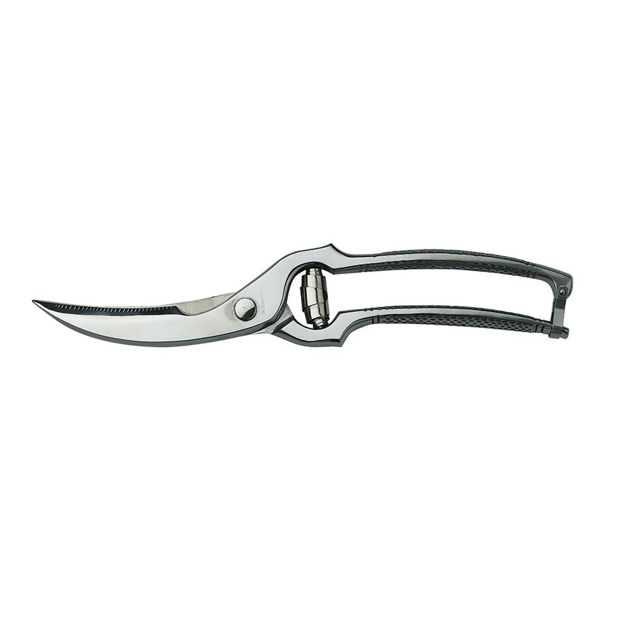 Tijera profesional para aves de corral, que gracias a su construcción en acero inoxidable forjado, agrega durabilidad, resistencia, y ayuda a contrarrestar la oxidación potencial. Para ayudar a facilitar el almacenamiento seguro en los cajones de la cocina, la cuchilla de las tijeras se puede bloquear.