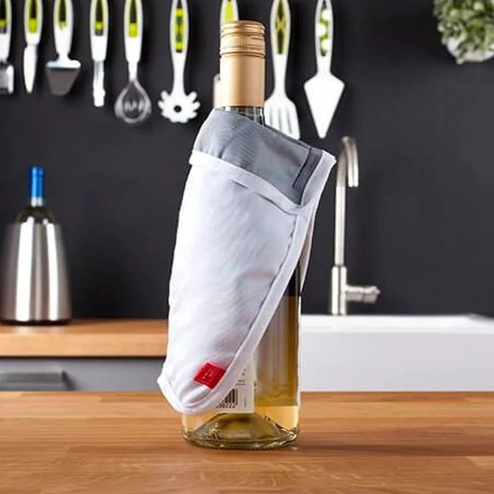 Simplifica la apertura y el servicio de tus vinos con el Abridor de Tapa Rosca con Toalla de Camarero de VacuVin. Este innovador accesorio está diseñado para abrir fácilmente botellas con tapa de rosca, asegurando un servicio de vino elegante y sin esfuerzo. La toalla de camarero incluida, con un patrón de goma en su interior, ofrece un agarre perfecto para abrir botellas y amortigua el sonido al abrir tapones de rosca. Además, este patrón de goma es ideal para servir vino, manteniendo un agarre firme en botellas frías y resbaladizas debido a la condensación. Este producto de VacuVin combina funcionalidad y estilo, convirtiéndose en un must-have para cualquier amante del vino o profesional de la hostelería.