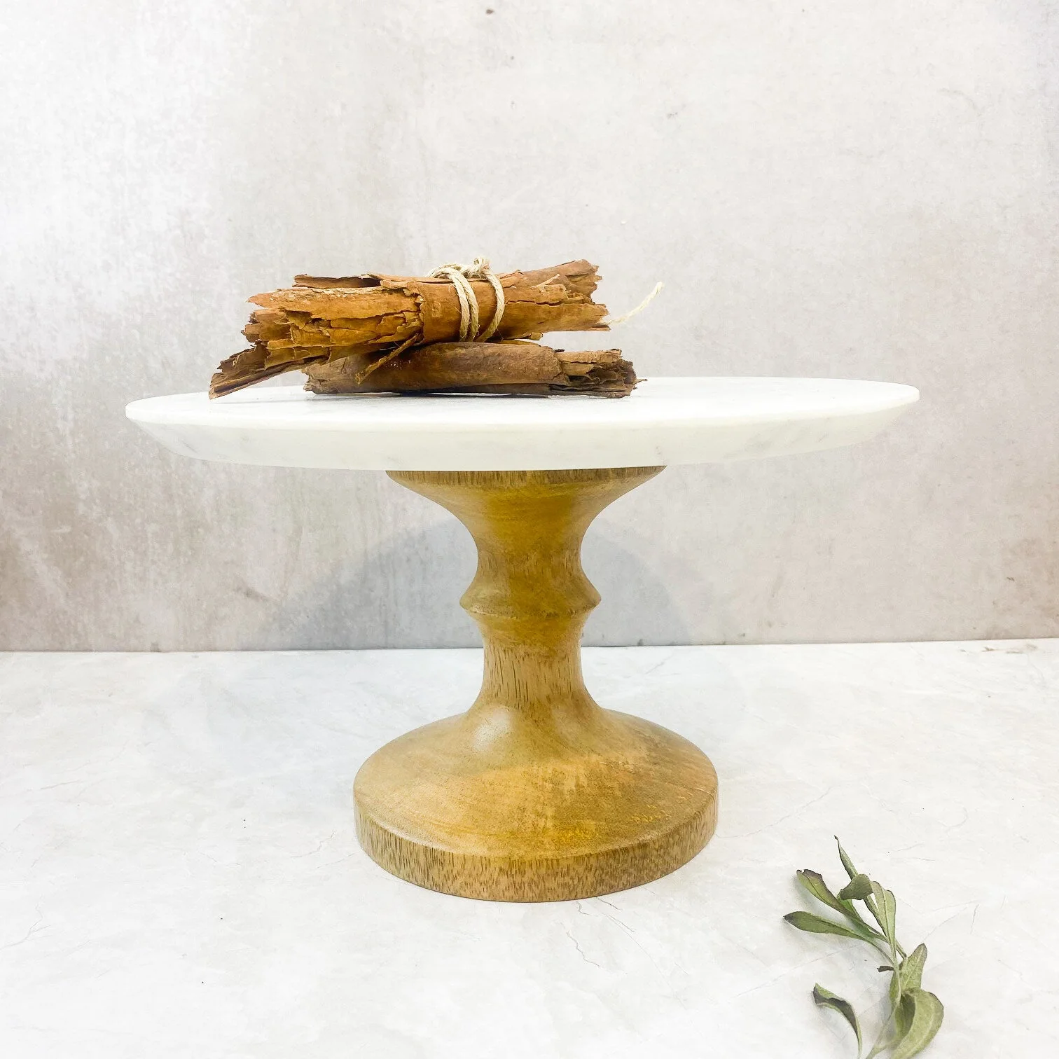 Descubre la joya de la repostería con este exquisito tortero de mármol y pedestal de madera de mango. Haz de cada postre una obra arte, potenciando tus creaciones dulces con una fusión de elegancia y funcionalidad. Tamaño: Ø 28 x 15 cm alto.