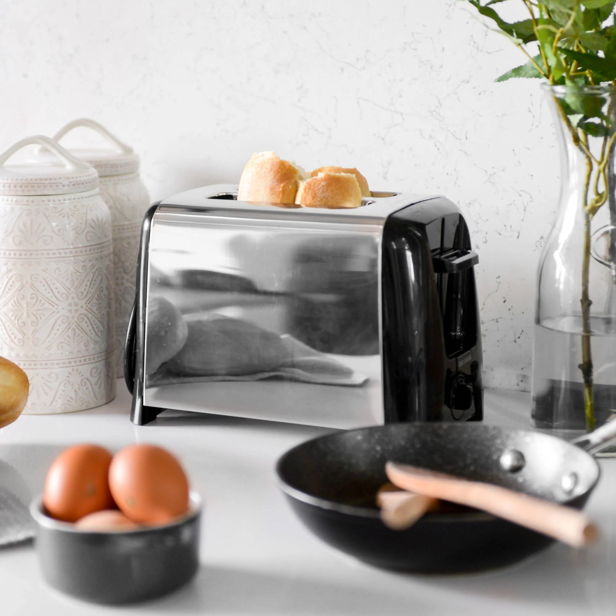 El tostador Hamilton Beach está construido en un cuerpo de acero Inoxidable para mayor durabilidad y con 2 ranuras extra anchas aptas para rebanadas y tipos de panes más gruesos, logrando resultados óptimos en cualquiera gracias a sus 7 niveles de intensidad y su sistema Toast Boost.