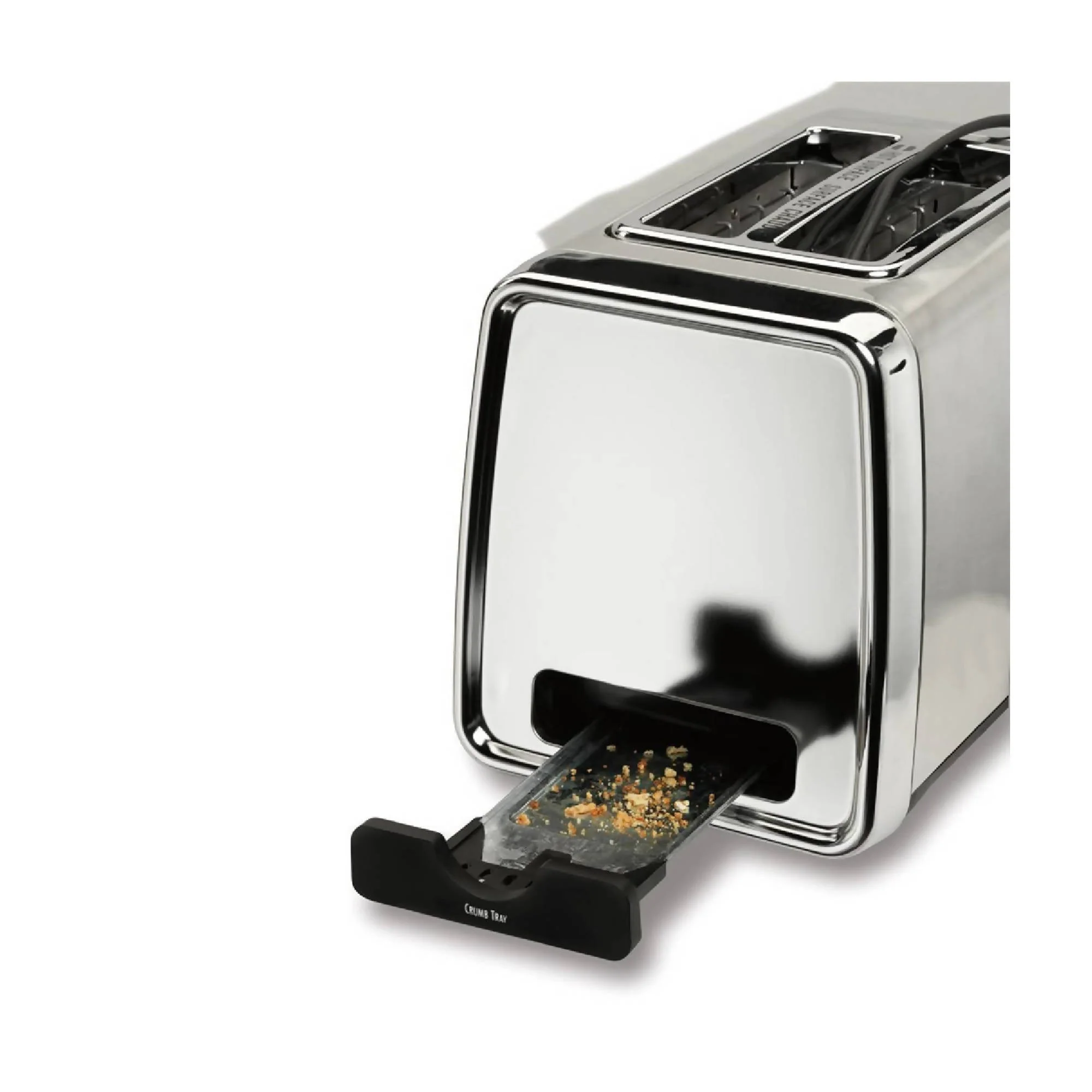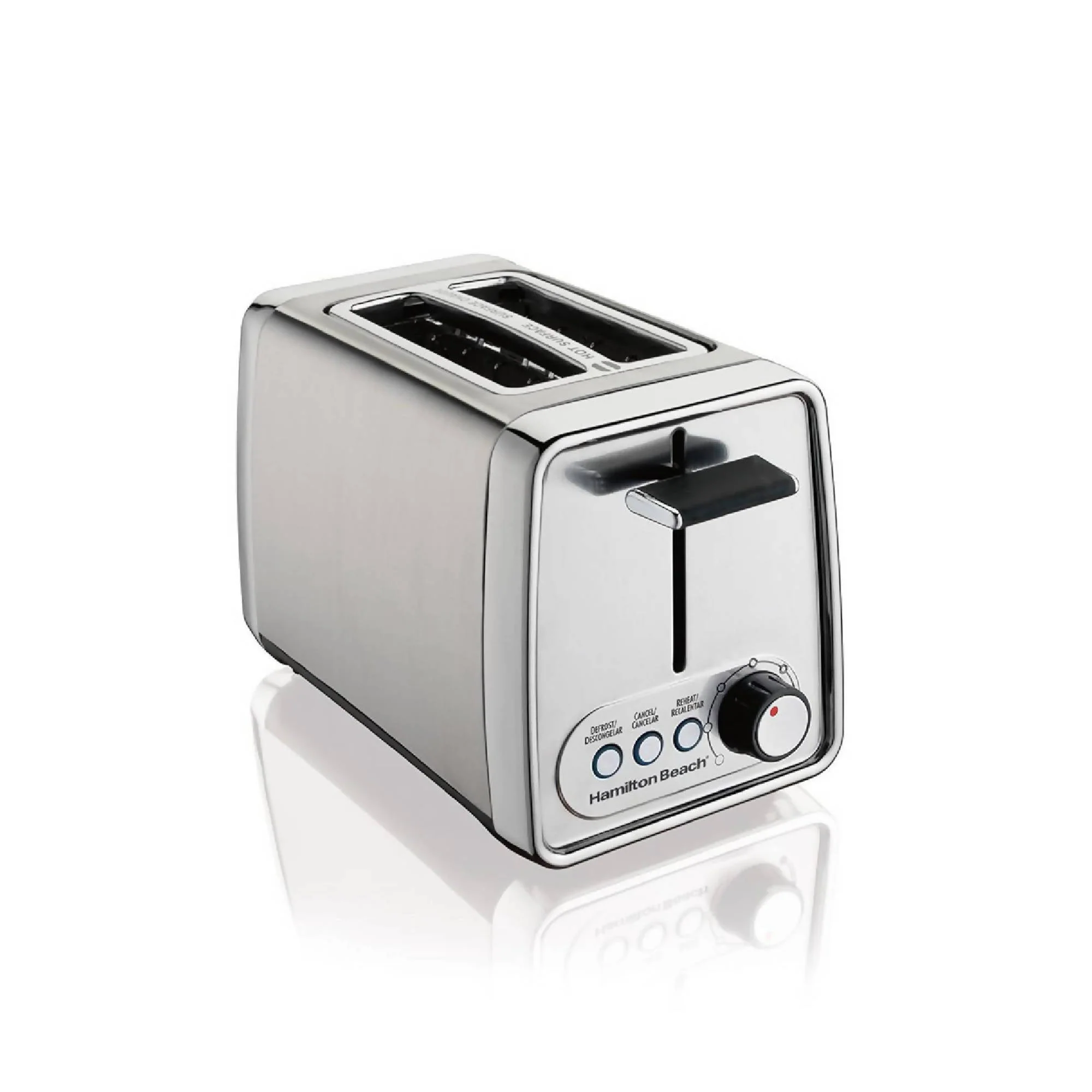 El tostador Hamilton Beach está construido en un cuerpo de acero Inoxidable para mayor durabilidad y con 2 ranuras extra anchas aptas para rebanadas y tipos de panes más gruesos, logrando resultados óptimos en cualquiera gracias a sus 7 niveles de intensidad, su sistema Toast Boost y funciones de descongelar, recalentar y cancelar.