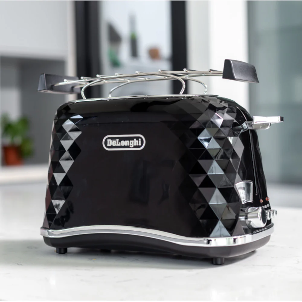 La Tostadora Eléctrica Brillante MOD de De’Longhi en su elegante color no solo agrega estilo a tu cocina, sino que también es muy funcional. Con 6 niveles de dorado, función de autocentrado y bandeja de migas, tostar tu pan favorito es más fácil que nunca. Además, su atractivo diseño la convierte en un elemento de estilo en tu espacio culinario.