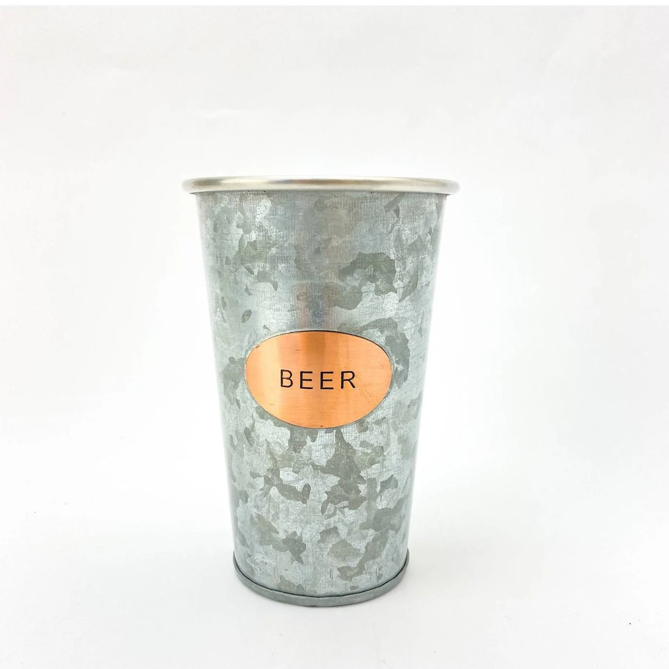 Nuestro vaso cervecero galvanizado le da un toque industrial chic para compartir un grato memento con tus amigos, Tiene doble pared, en Acero inoxidable interior, galvanizado exterior con toques de cobre. Producto importado directamente de India, elaborado por empresas de manufactura artesanal.