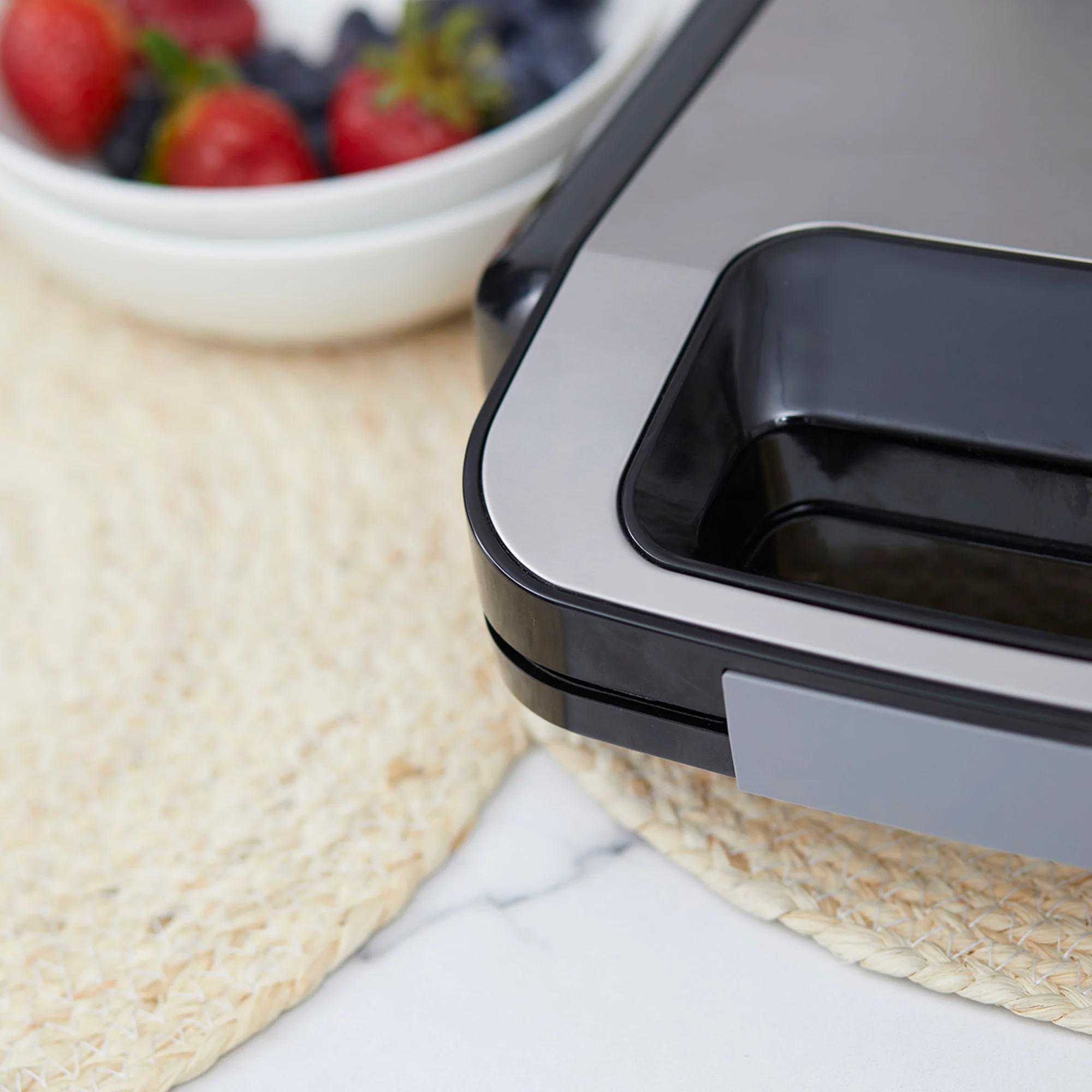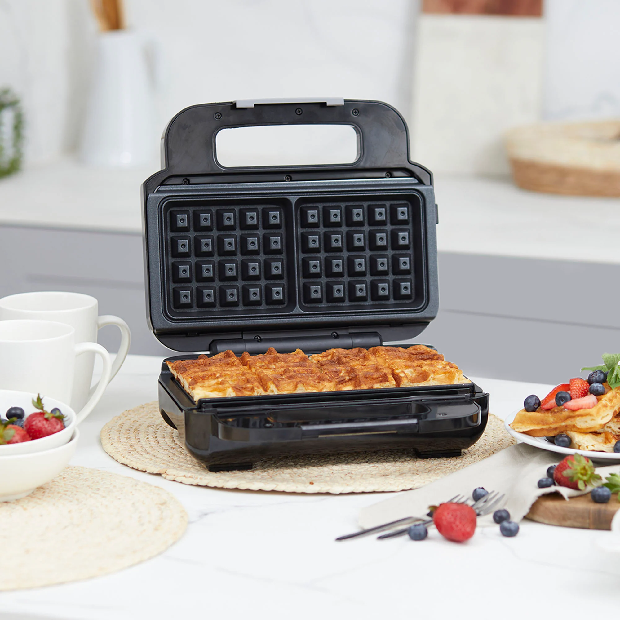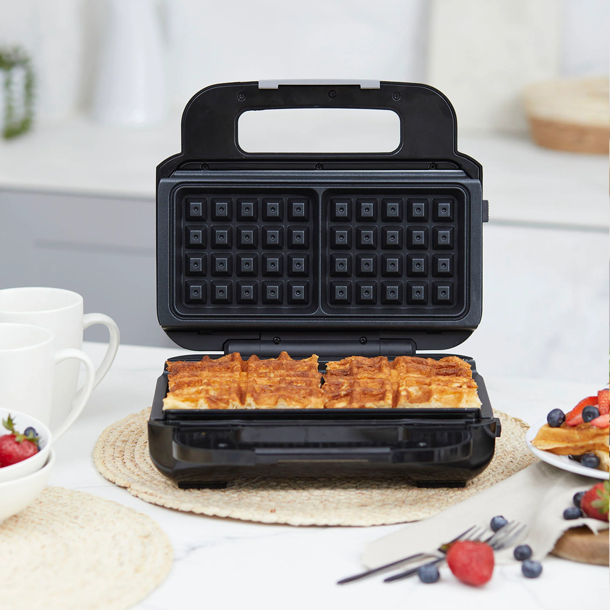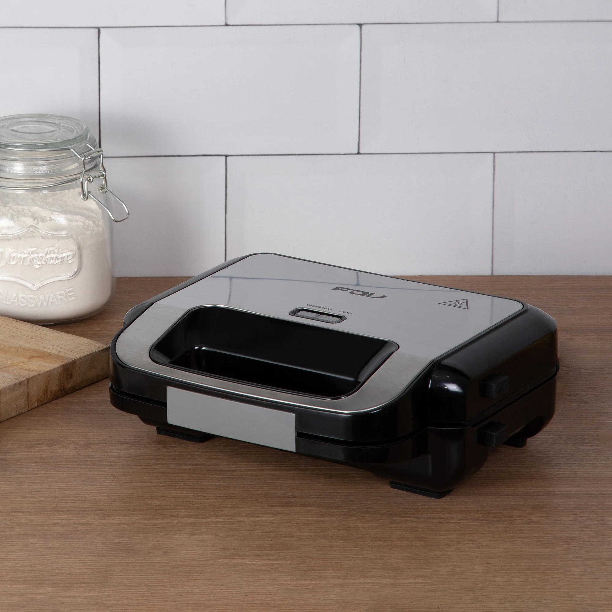 ¡Disfruta de lo mejor de cocinar con la Waflera Sandwichera Press de la marca FDV! Esta máquina te permite preparar waffles esponjosos con el dorado perfecto para que los disfrutes a tu gusto. Con 2 placas desmontables e intercambiables, también podrás preparar sándwiches crujientes. Equipada con luz de encendido y control de temperatura, te brinda la flexibilidad para disfrutar de tus alimentos de la manera que prefieras. Fácil de lavar gracias a sus placas desmontables. Aprovecha a llevar la waflera y sandwichera de FDV disponible en Kitchen Center.